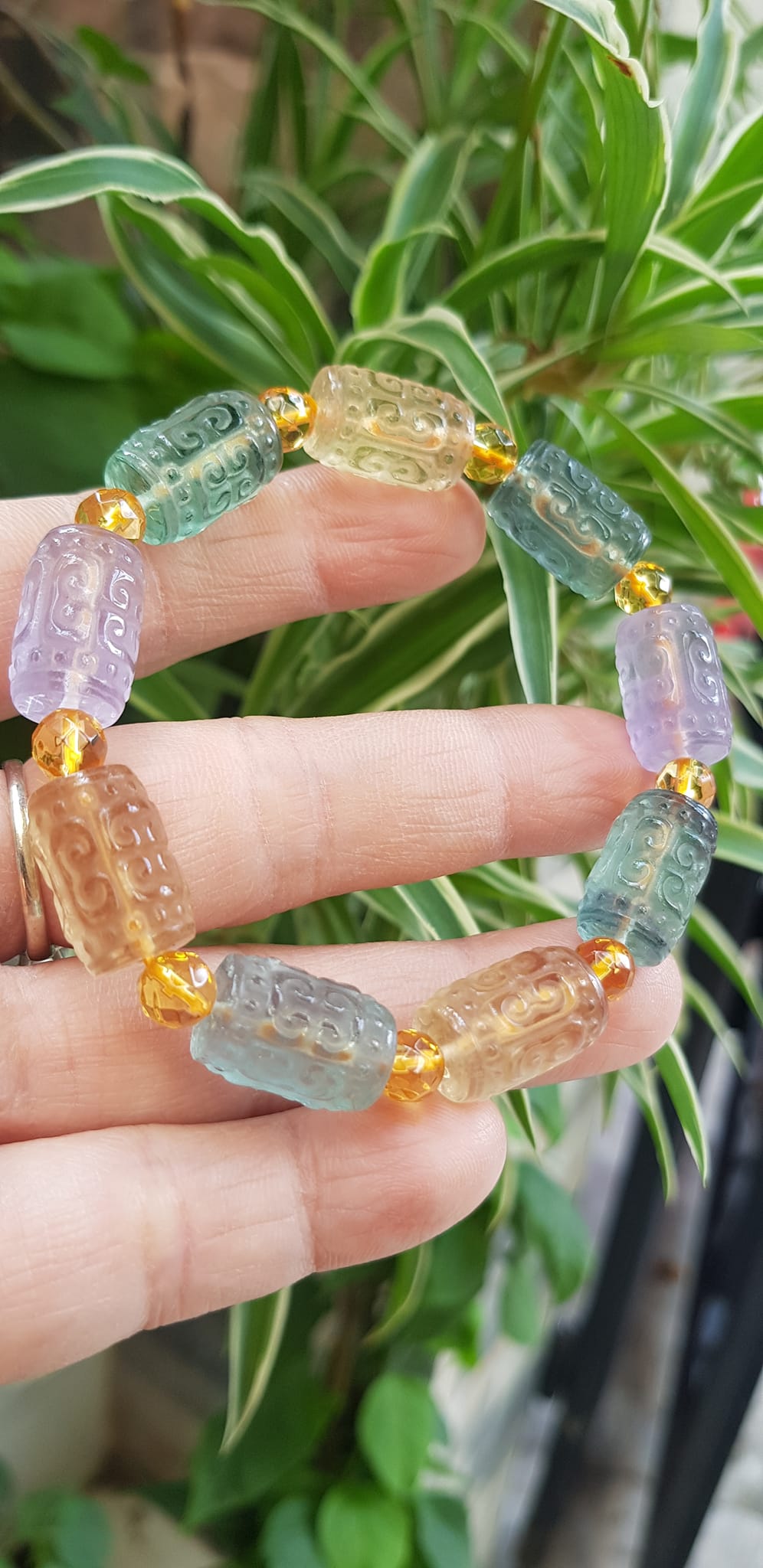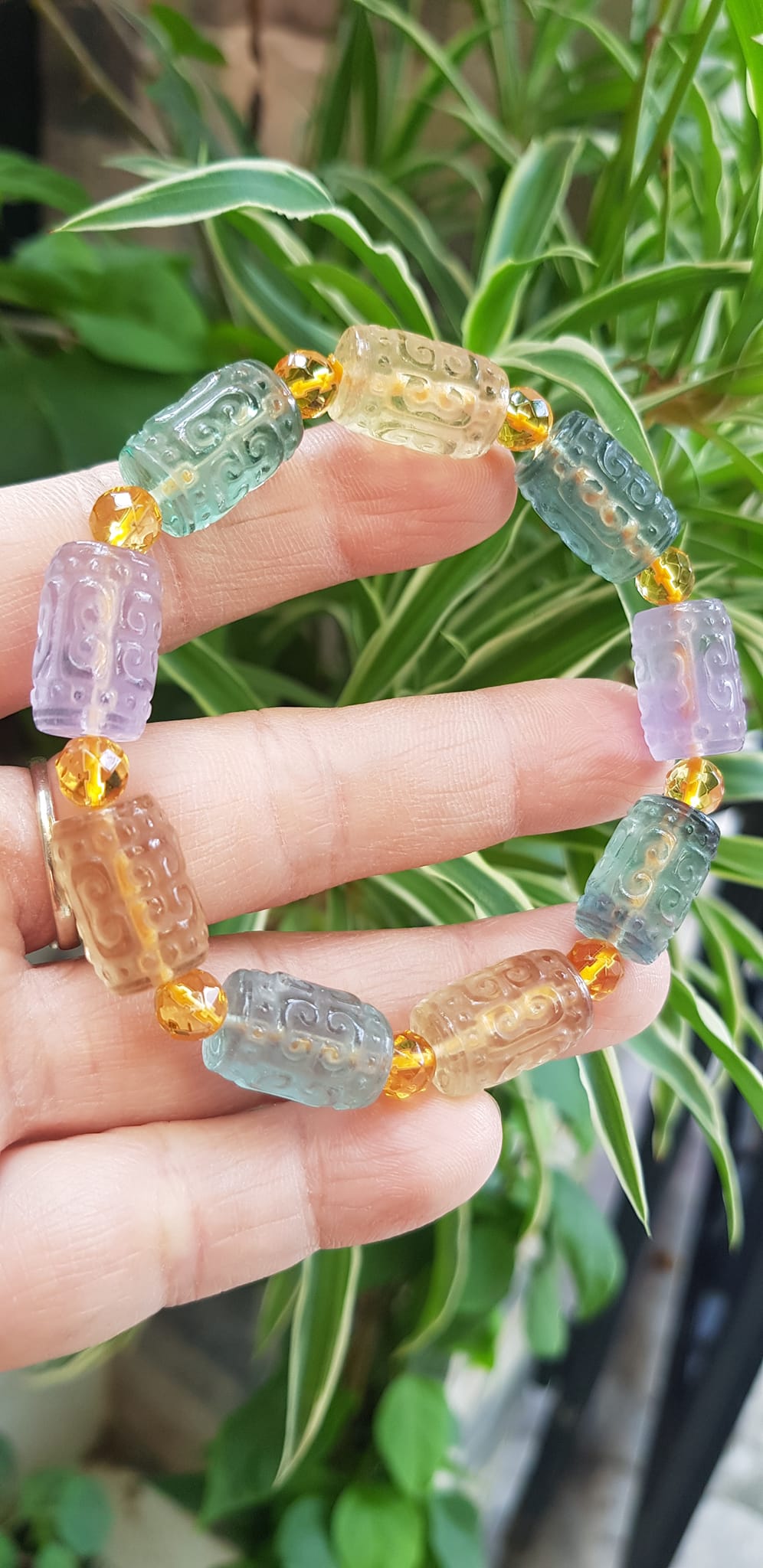 ✨Vòng Tay nữ charm cao cấp Đá Fluorit tự nhiên đa sắc màu kiểu hạt 10mm phối tròn đẹp sang các Chị đeo xinh tay may mắn tài lộc cả năm ạ