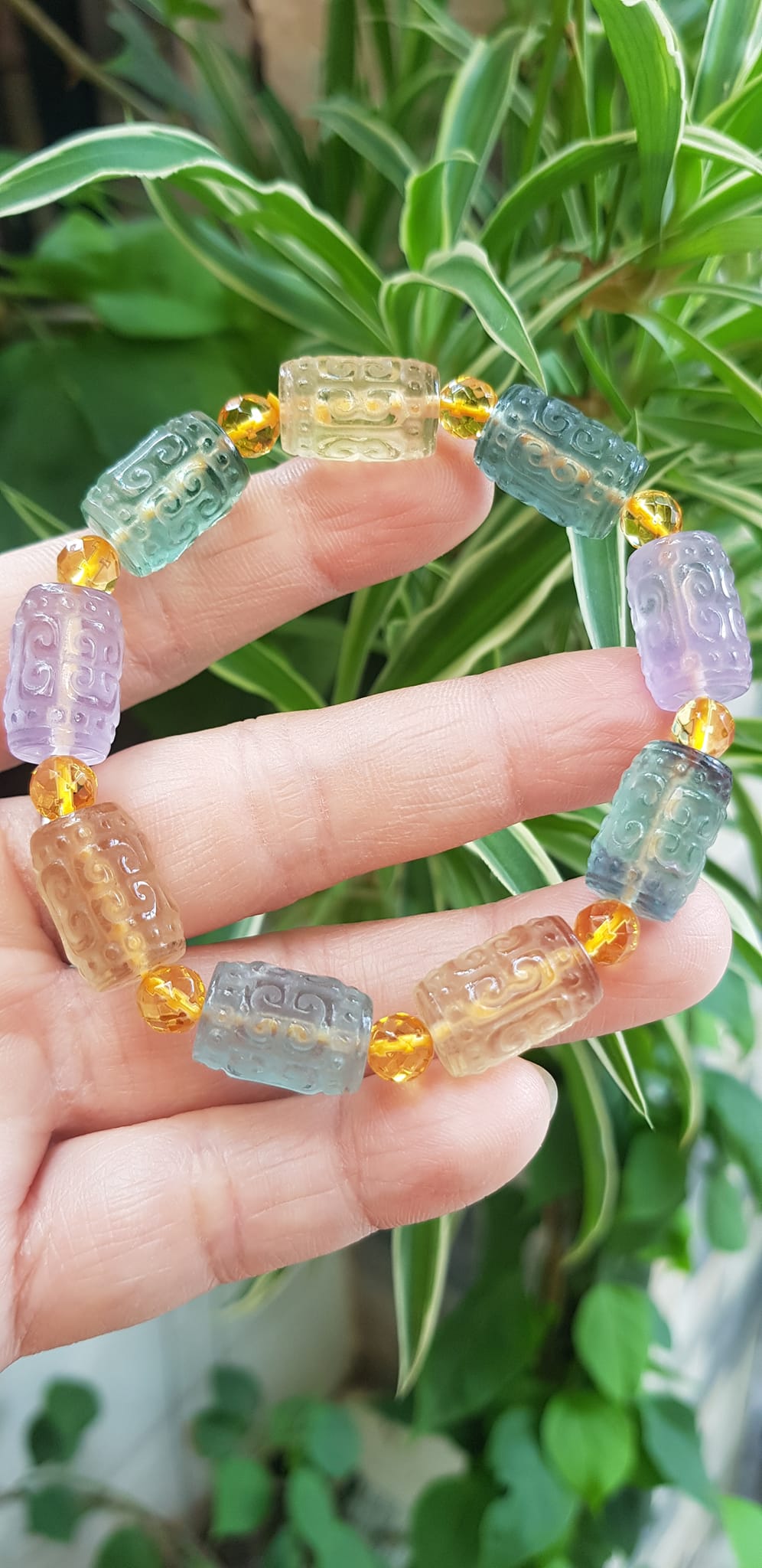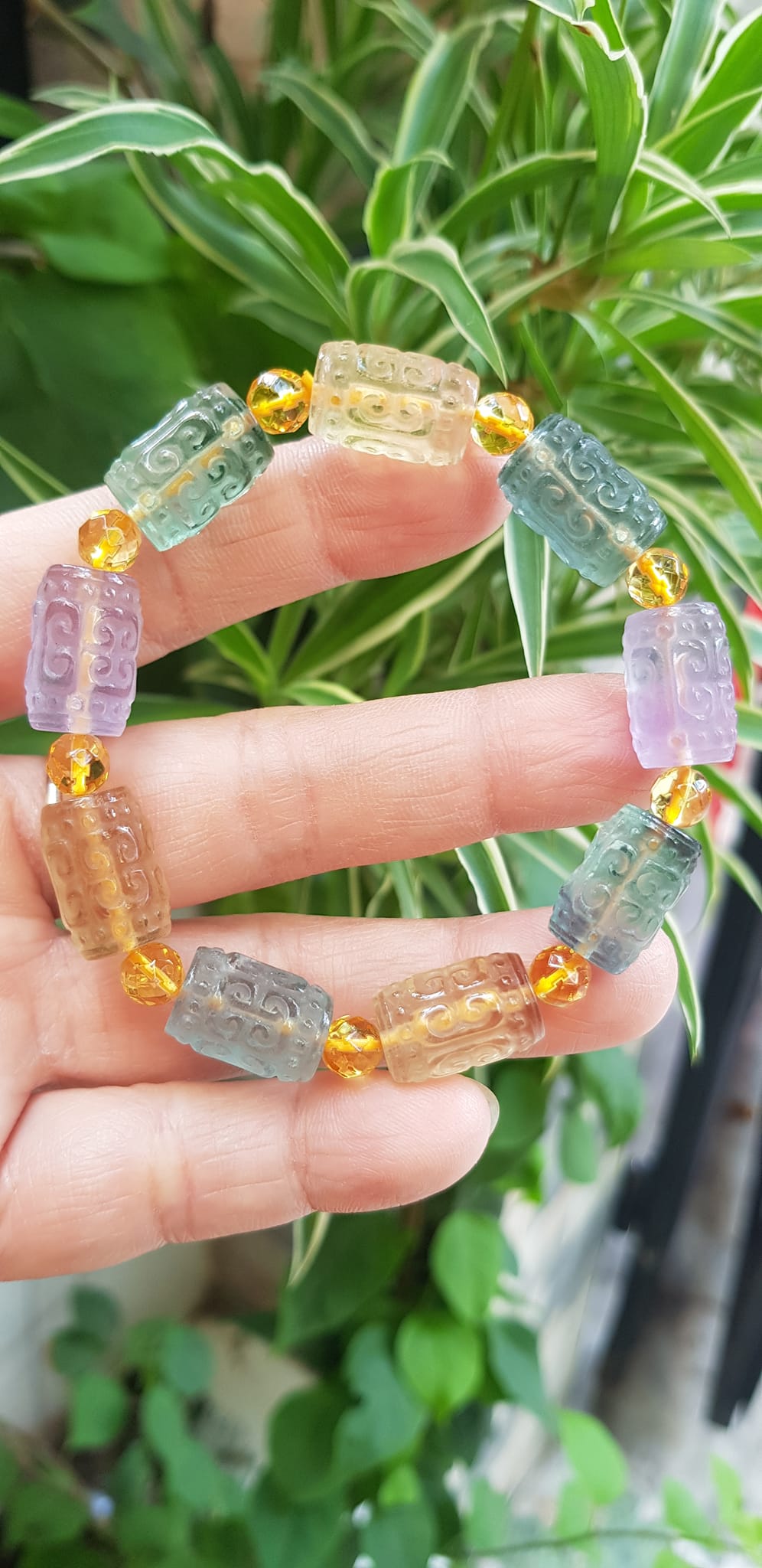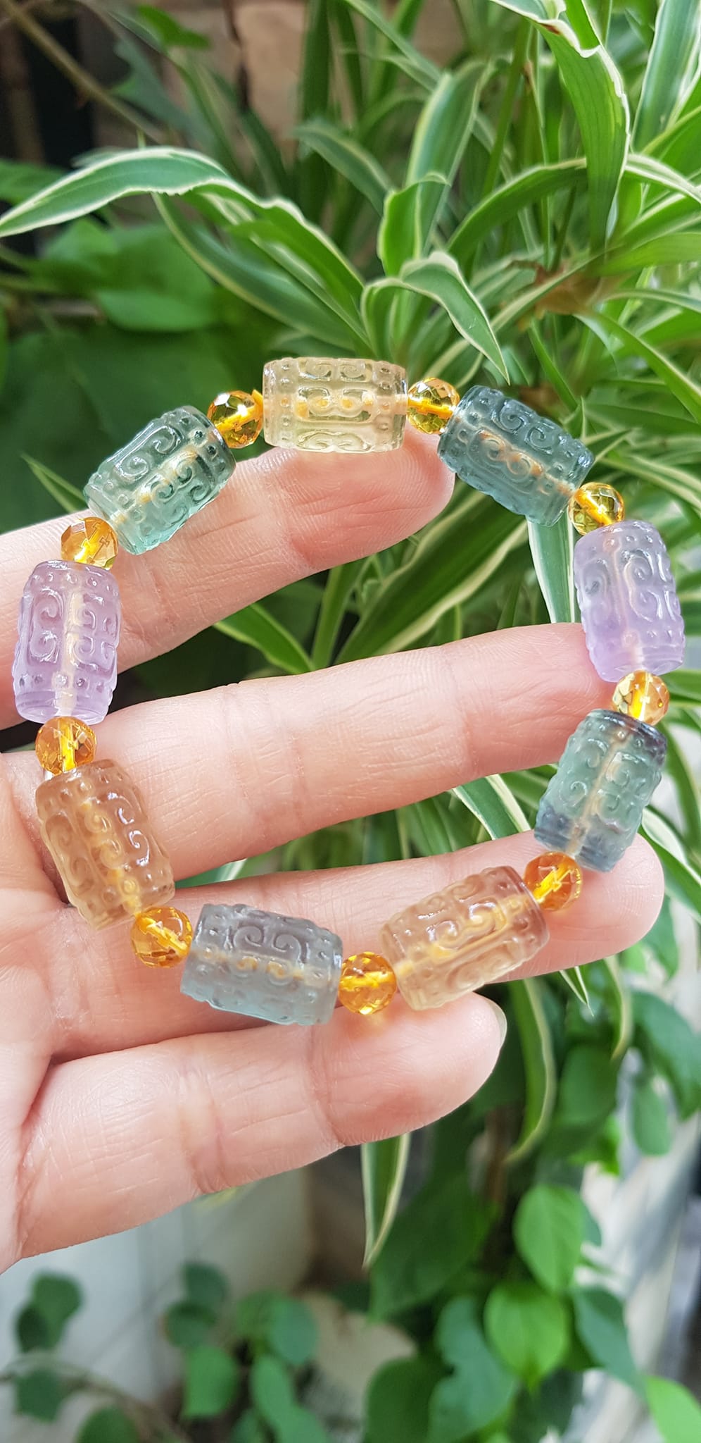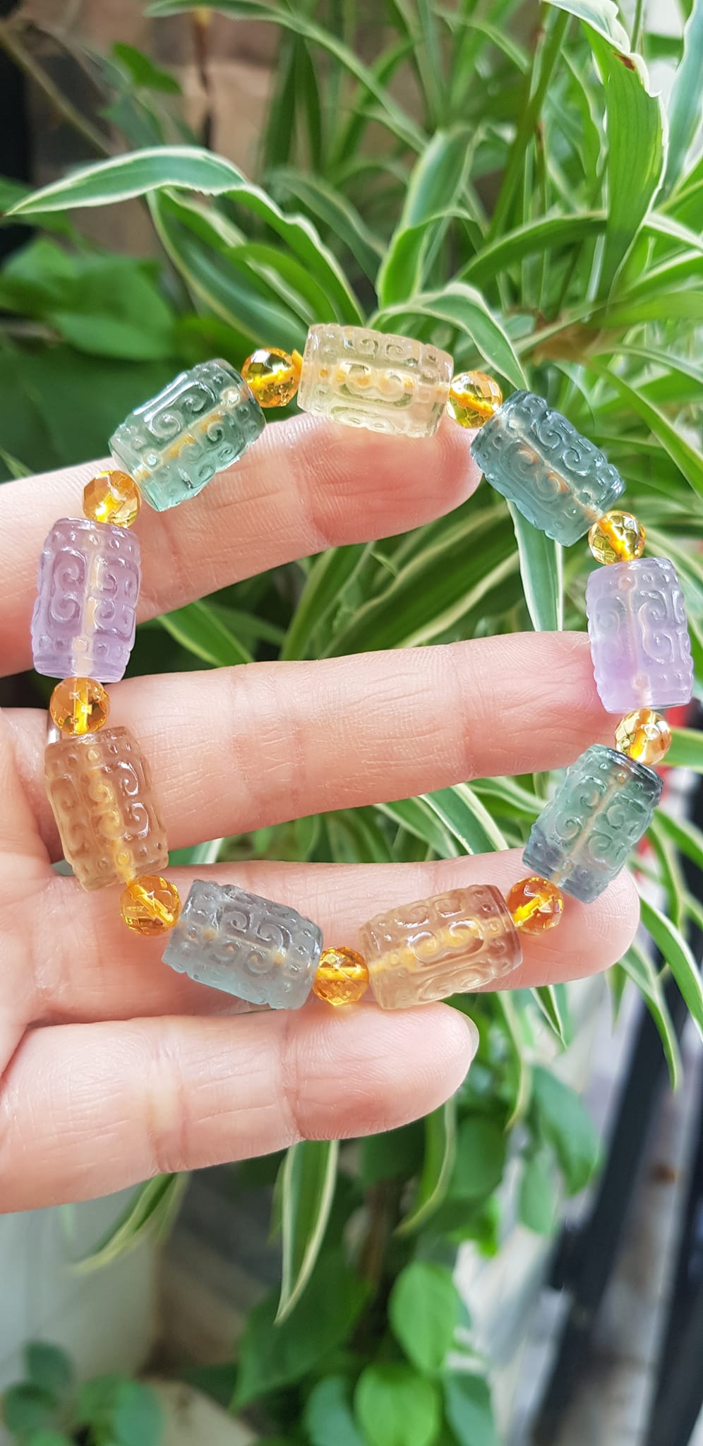 Vòng Tay nữ charm cao cấp Fluorit tự nhiên đa sắc kiểu hạt lu 10mm phối tròn đẹp sang Shop Sunny Q8