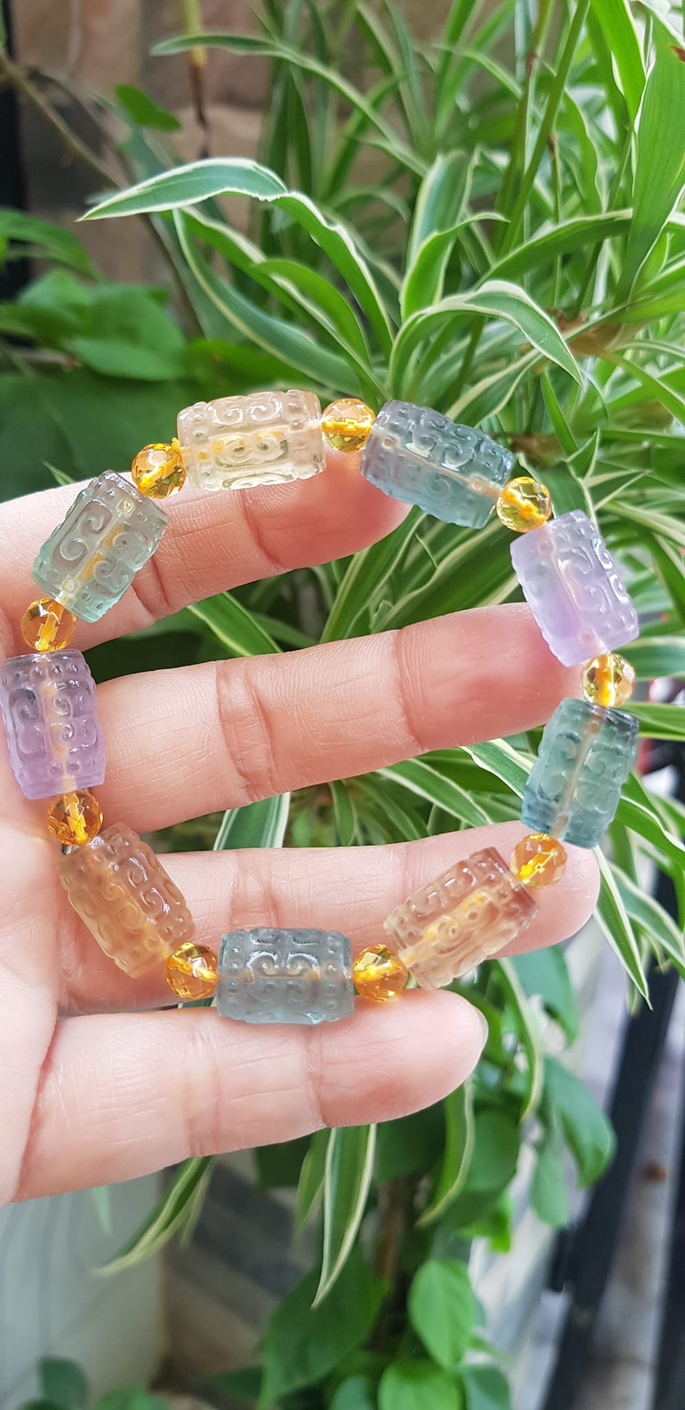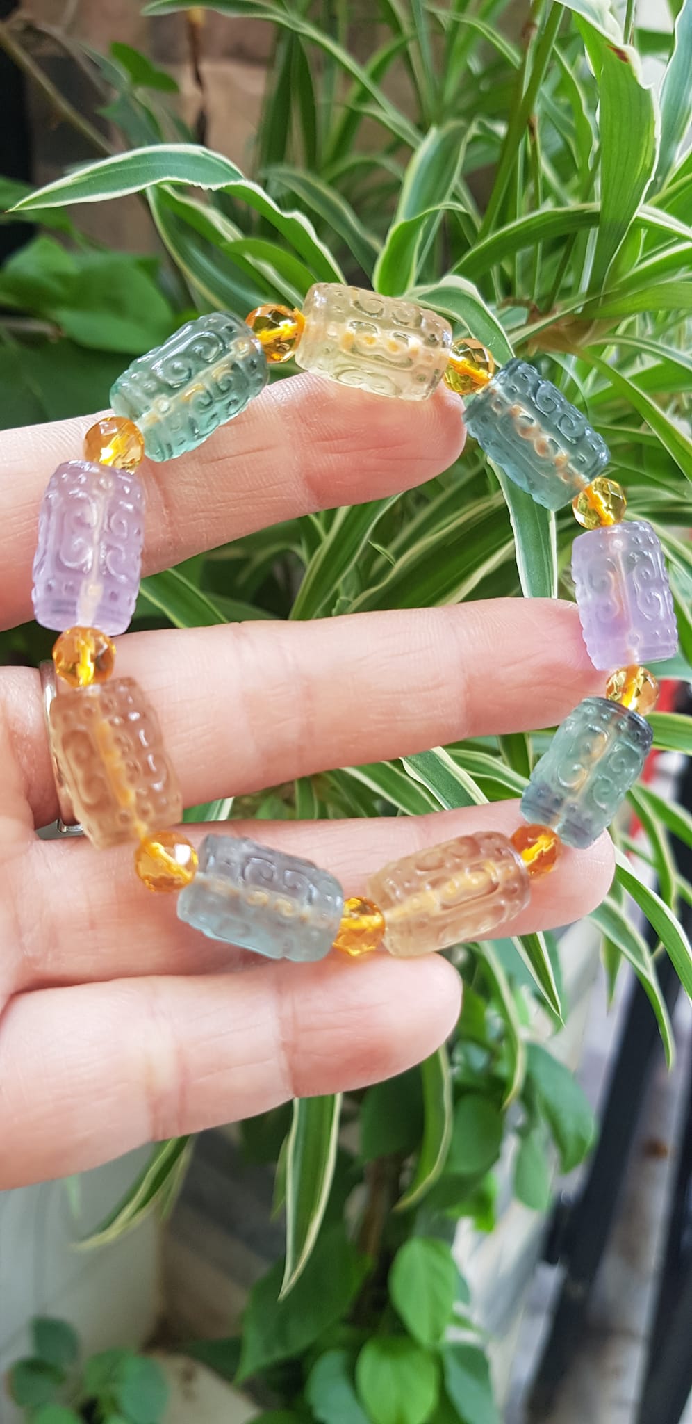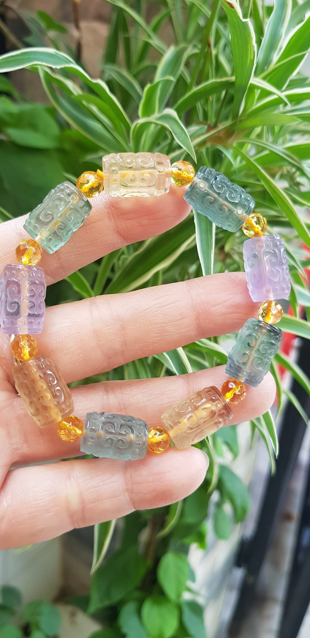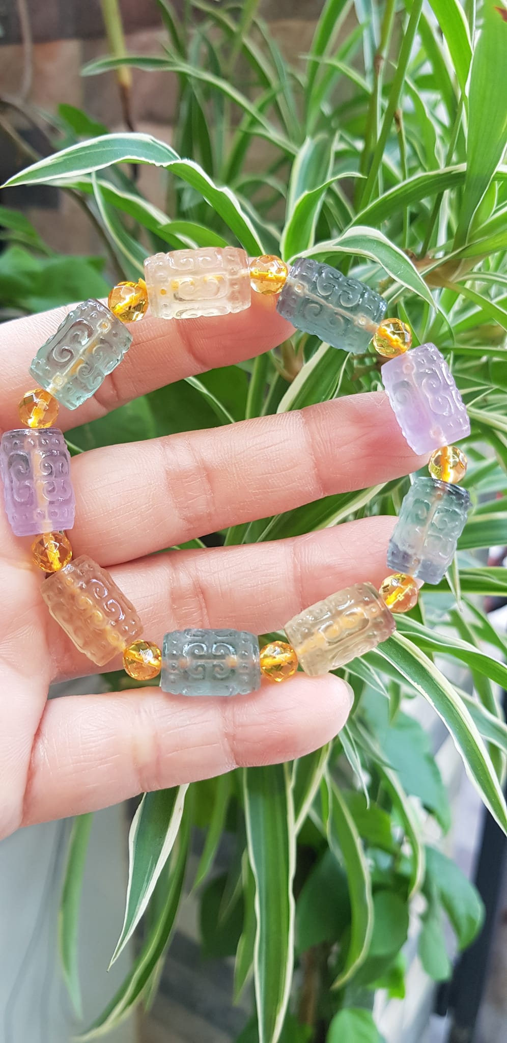 Vòng Tay nữ charm cao cấp Fluorit tự nhiên đa sắc kiểu hạt lu 10mm phối tròn đẹp sang Shop Sunny Q8