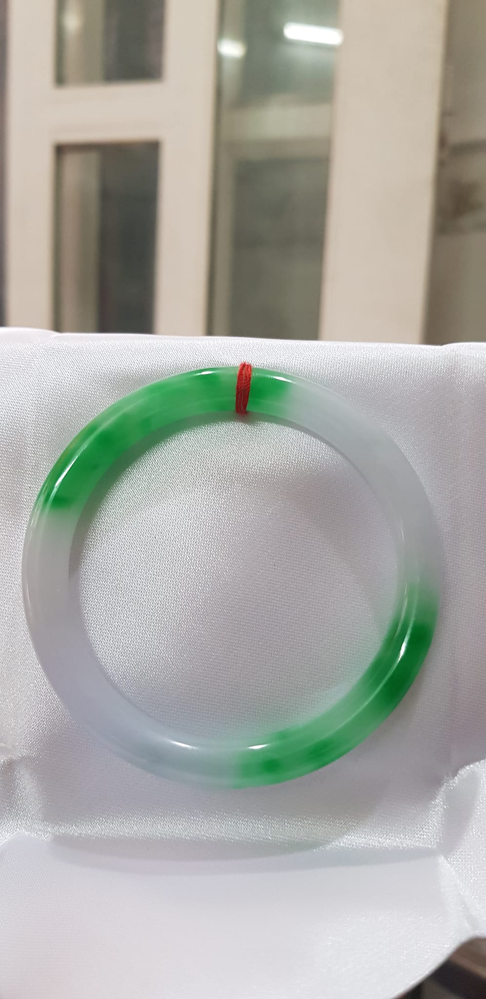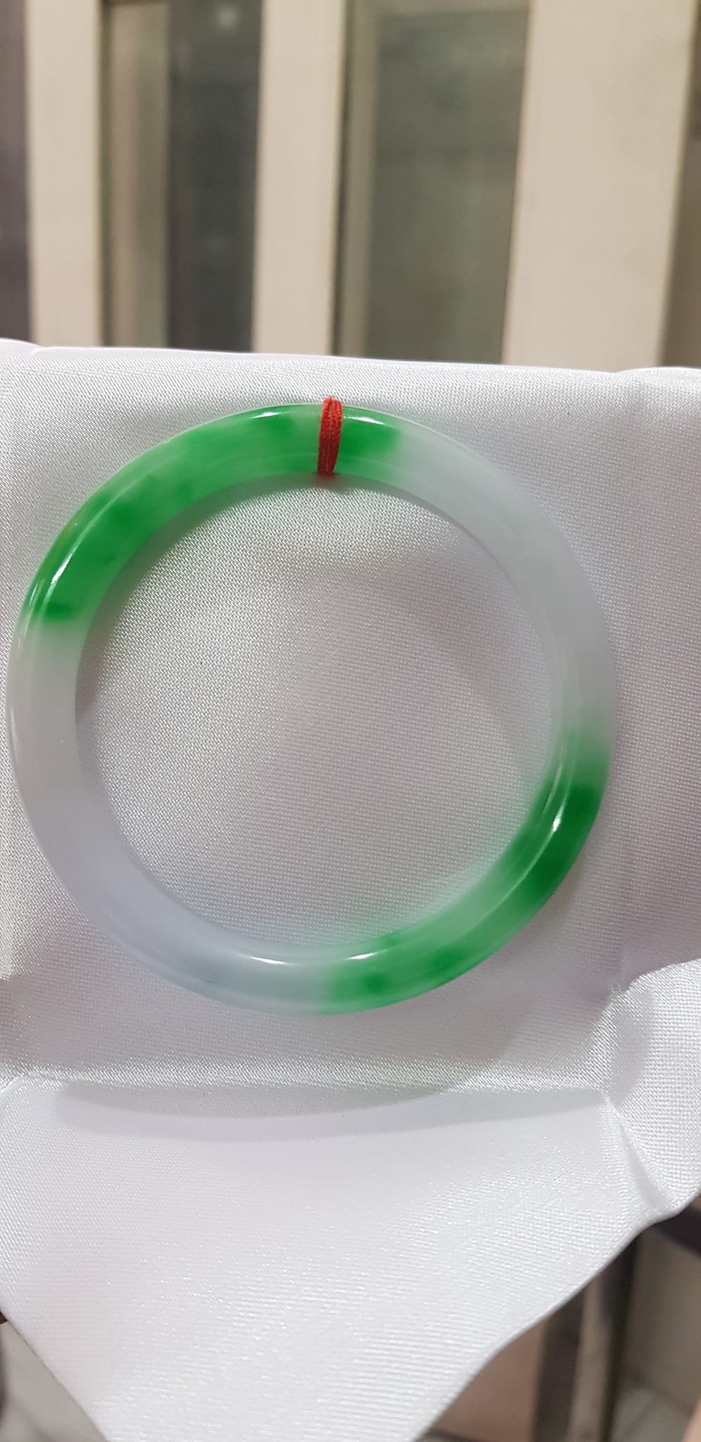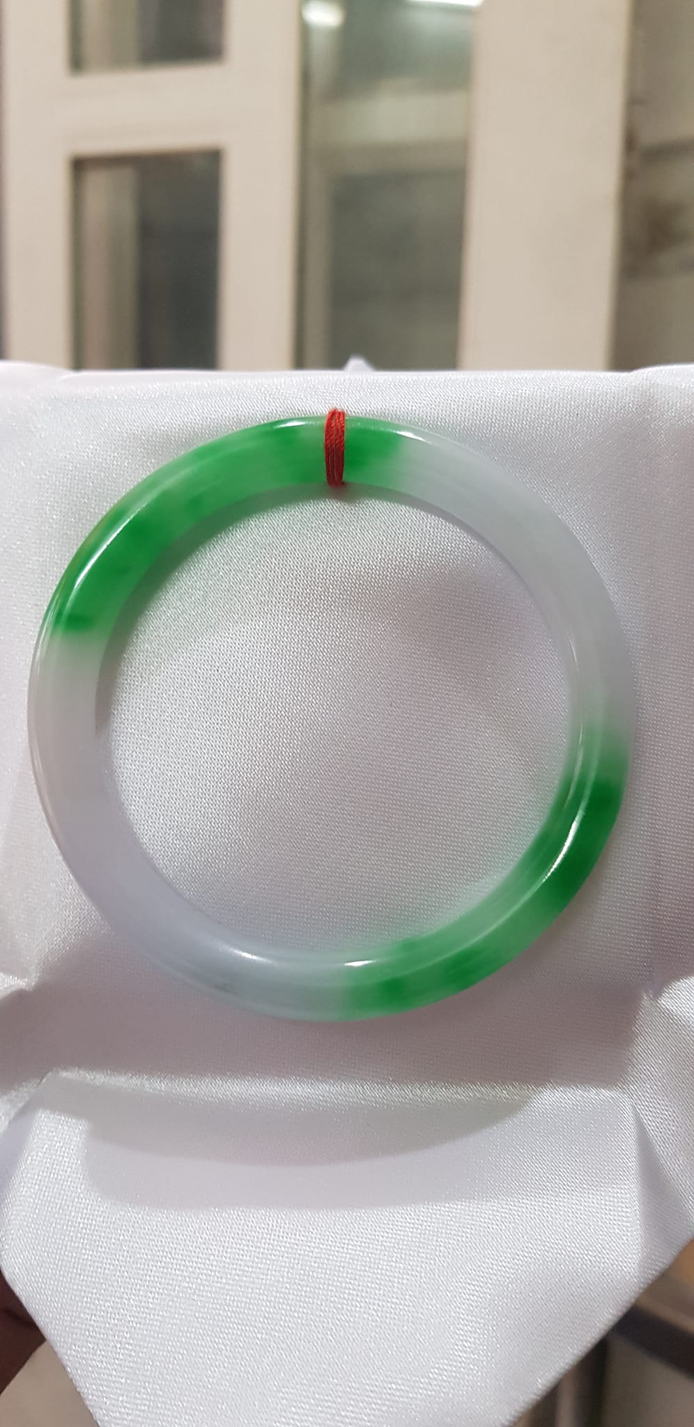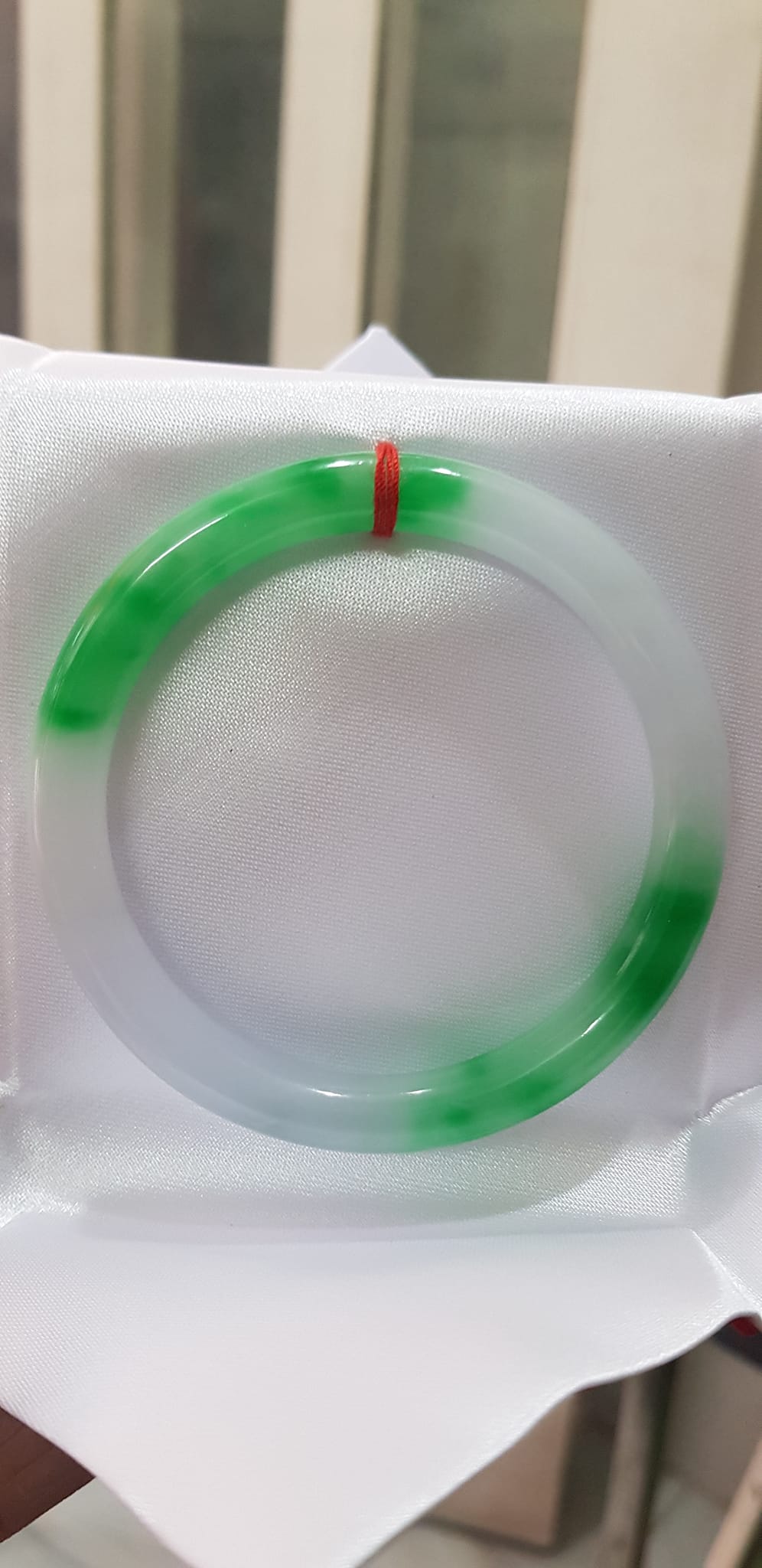 Vòng tay đá Cẩm Thạch mới TR Lý 51mm x cọng 6,2mm Màu Xanh lý 2 bên trắng đều đẹp nữ 50kg - 53kg đeo