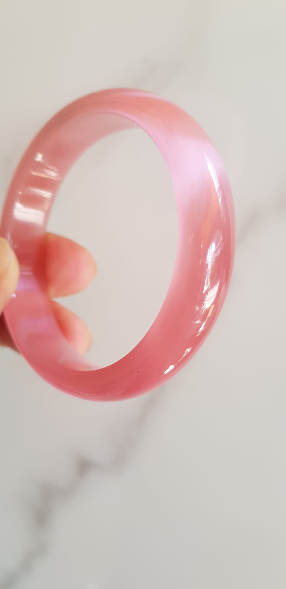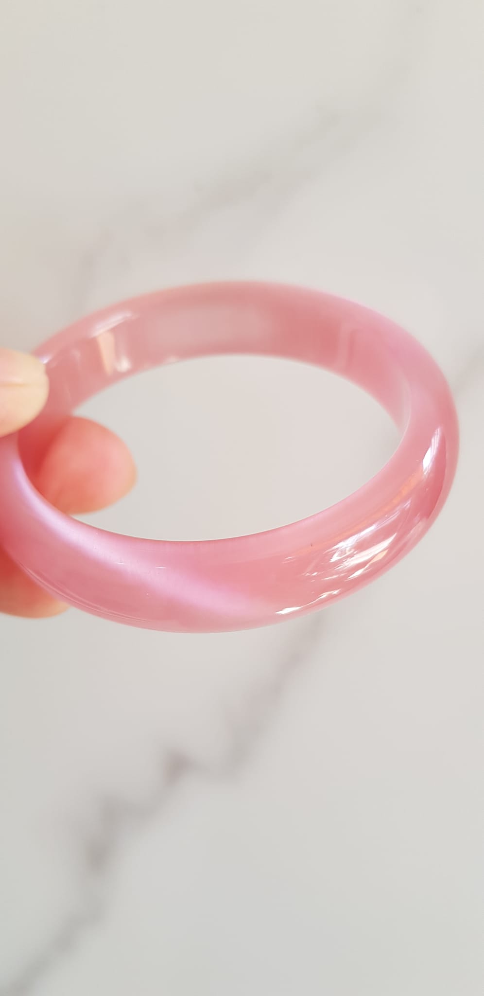Vòng tay nữ đá mắt mèo hồng bản hẹ mới Ni 53mm x cao 13mm x dầy 7mm Nữ 50kg - 57kg đeo Vòng màu hồng hồng nhẹ xinh tươi đẹp rẻ lắm chuẩn hợp nữ mệnh hỏa mệnh thổ ạ