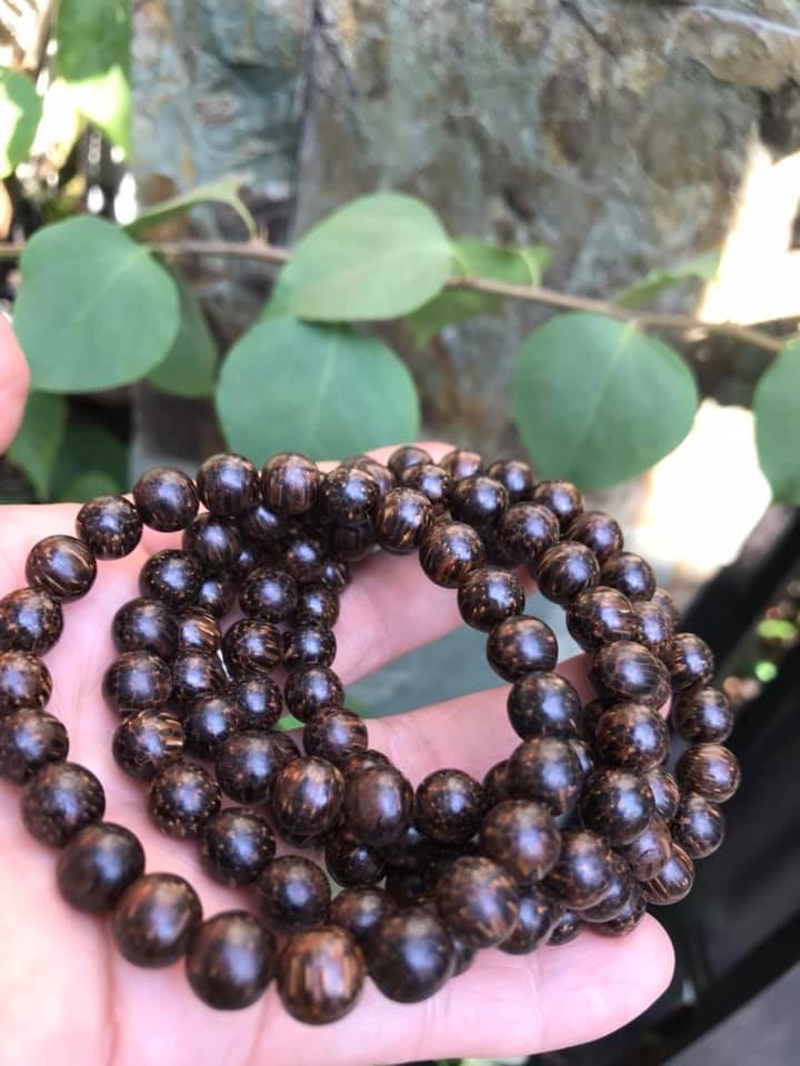 VÒNG CHUỖI ĐEO TAY NỮ GỖ TRẦM HƯƠNG SIZE 8MM MÙI THƠM NHẸ MÀU NÂU VÂN GỖ TRẦM TỰ NHIÊN ĐẸP 220K/1V