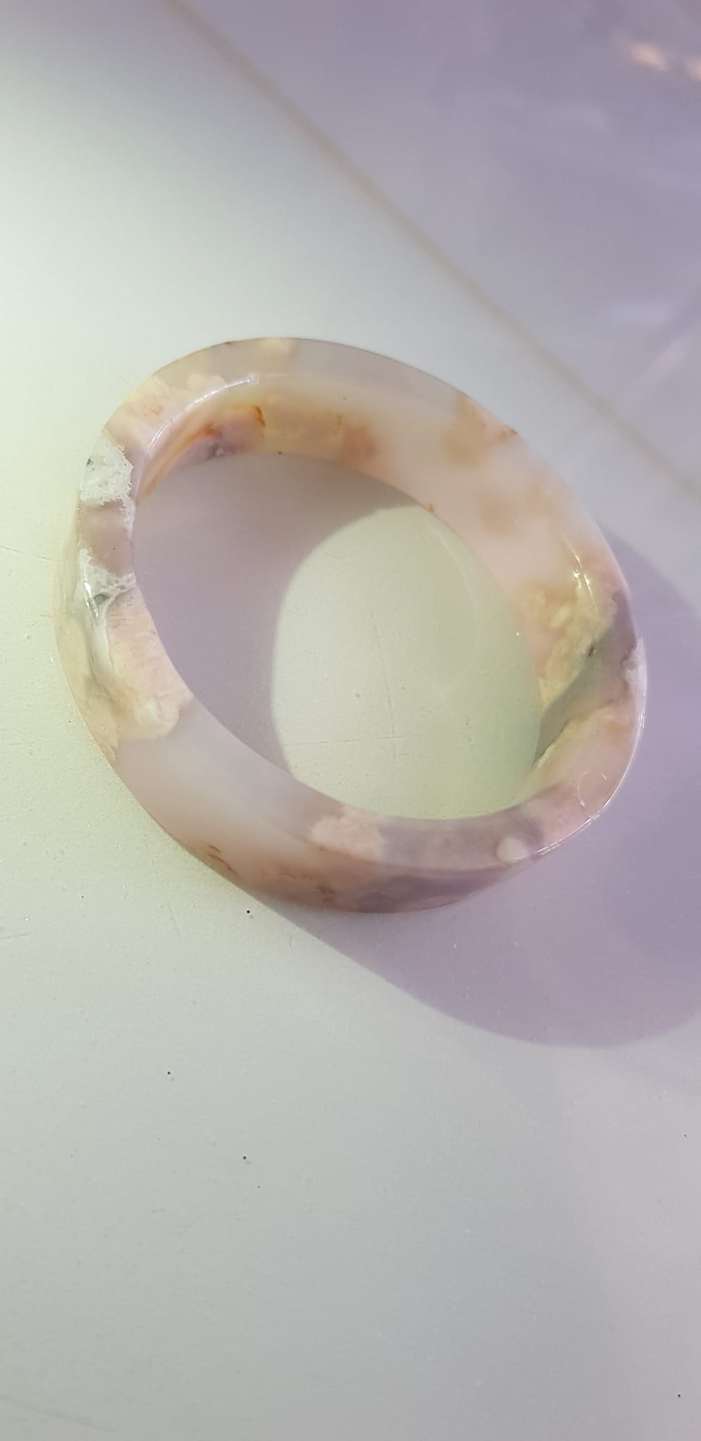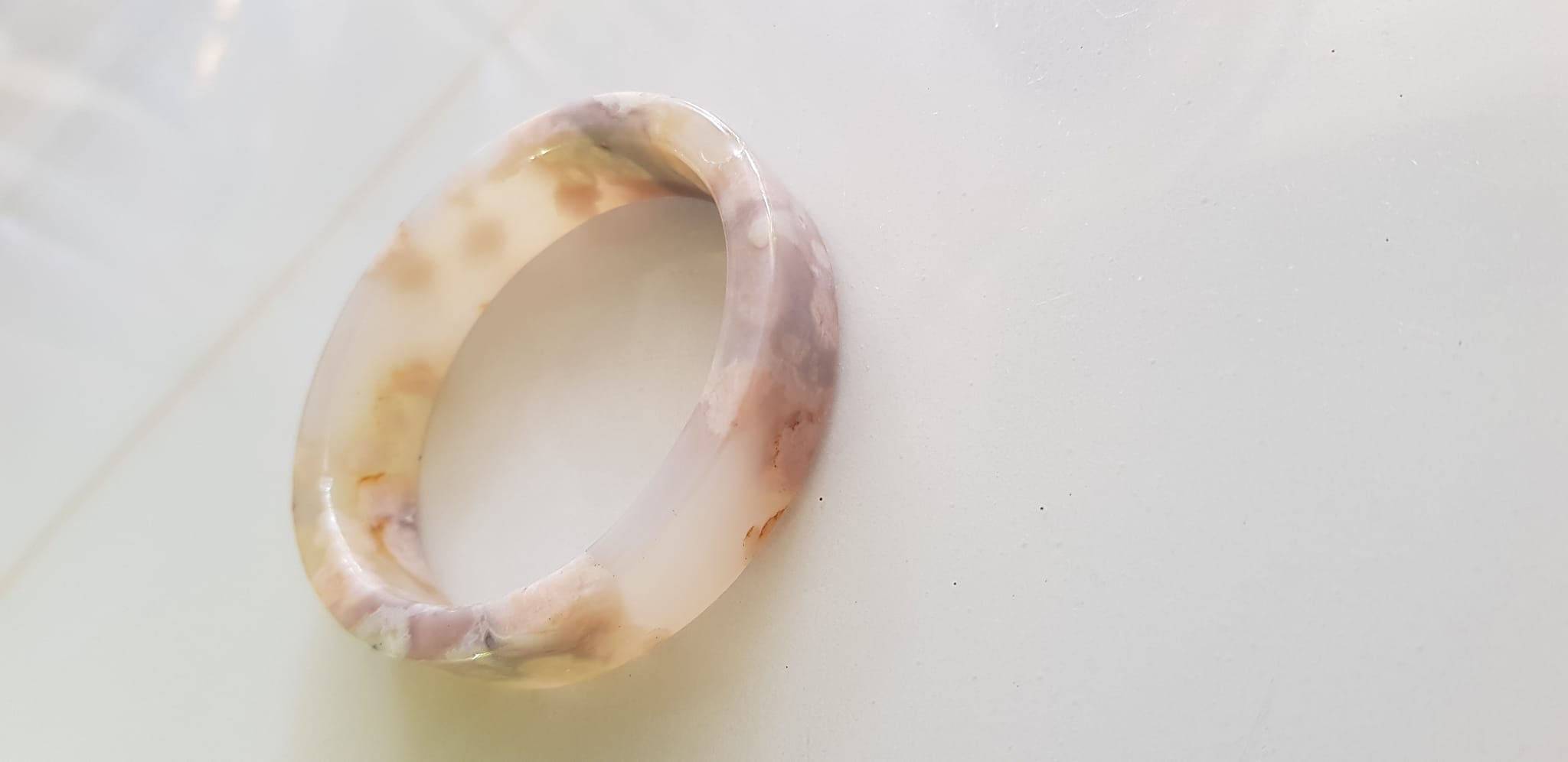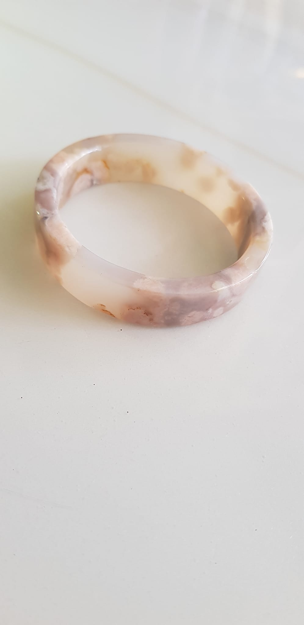 Vòng tay Nữ Bản Hẹ Mới Đá Mã Não Bông Tuyết Hồng nhẹ trắng trong bóng quá đẹp luôn ạ Ni 53mm x Cao 11mm x dầy 7mm Nữ Cân nặng 52kg - 55kg đeo