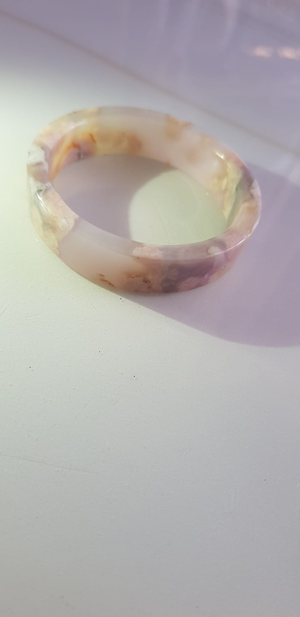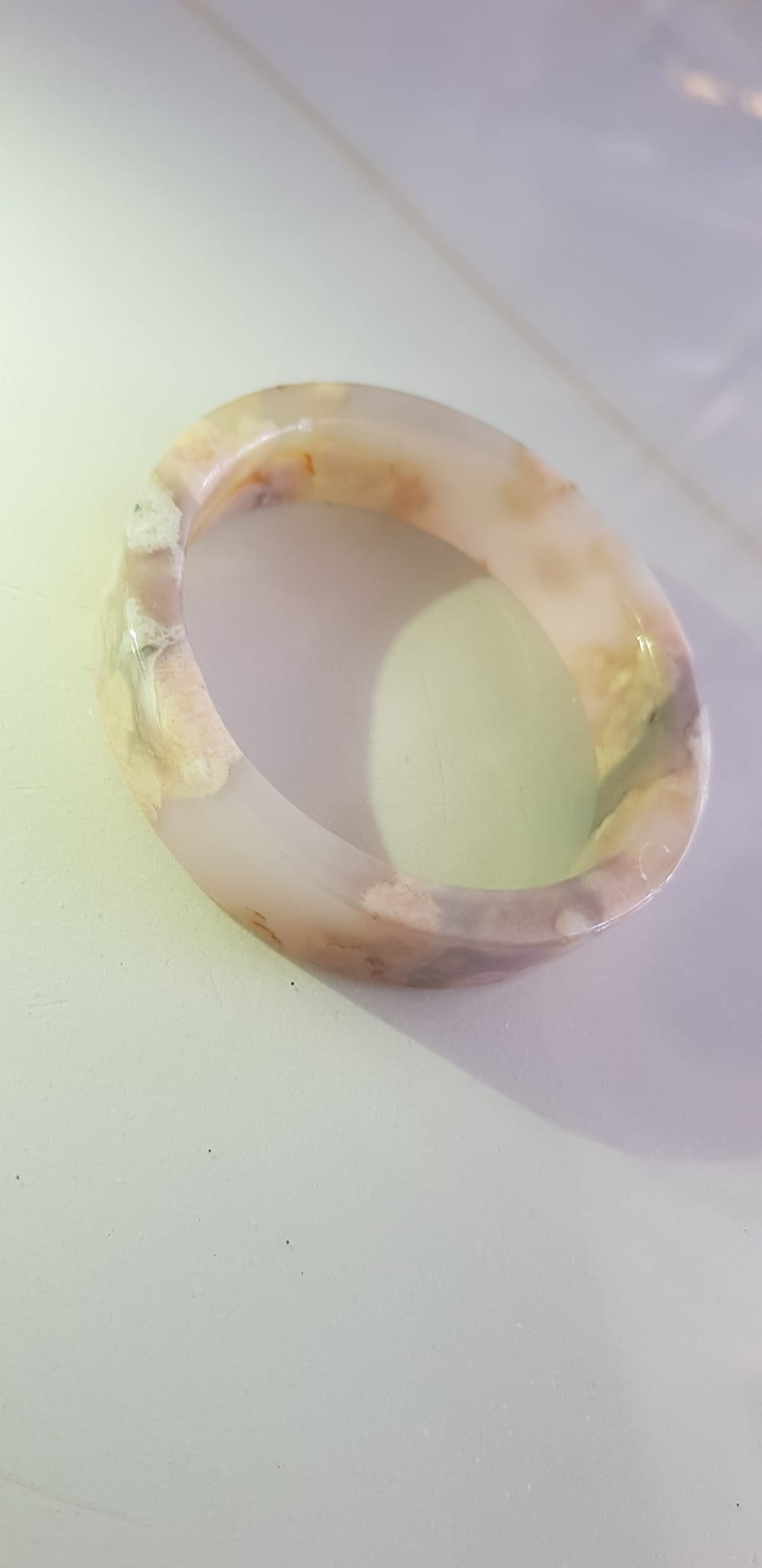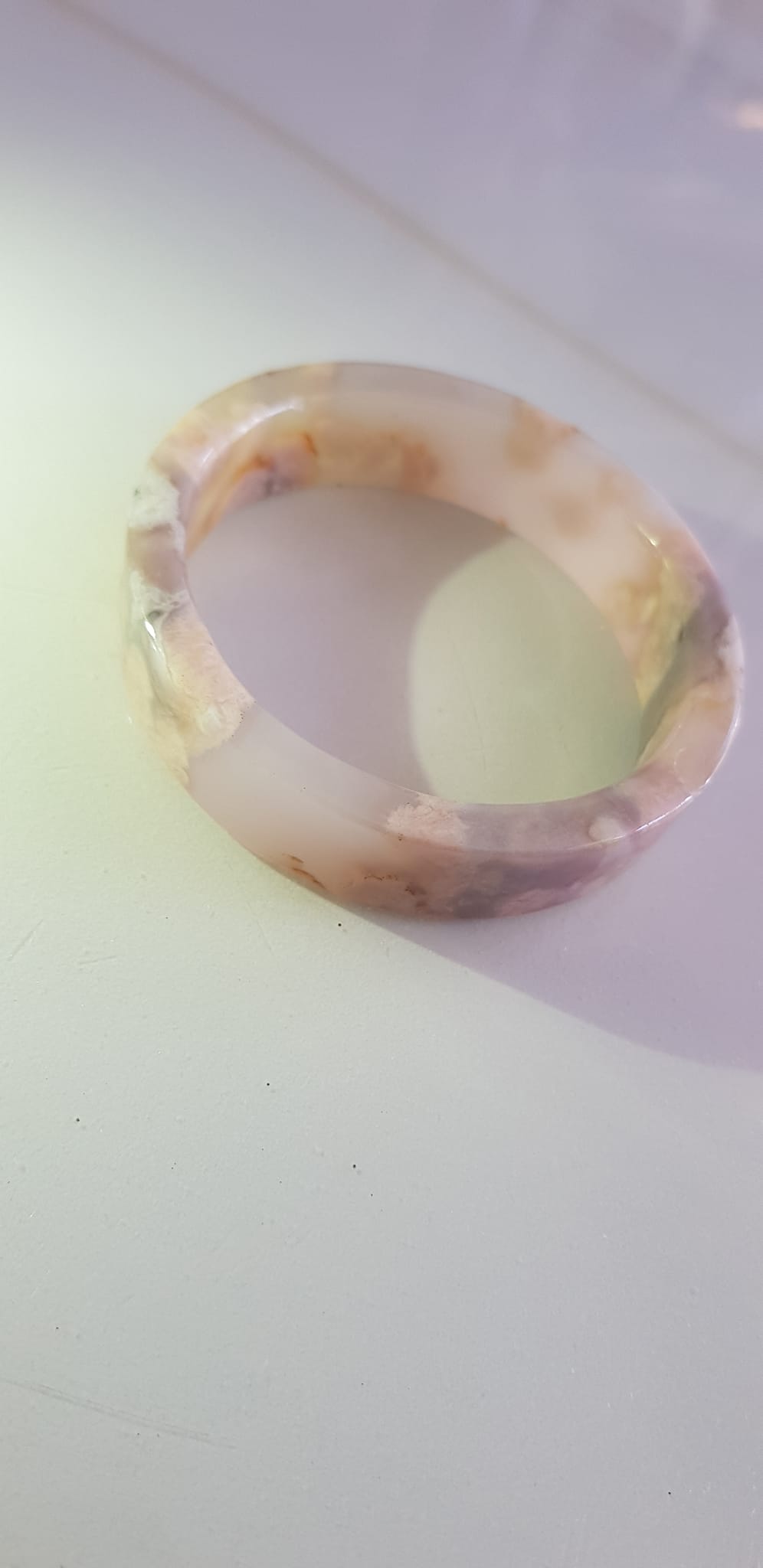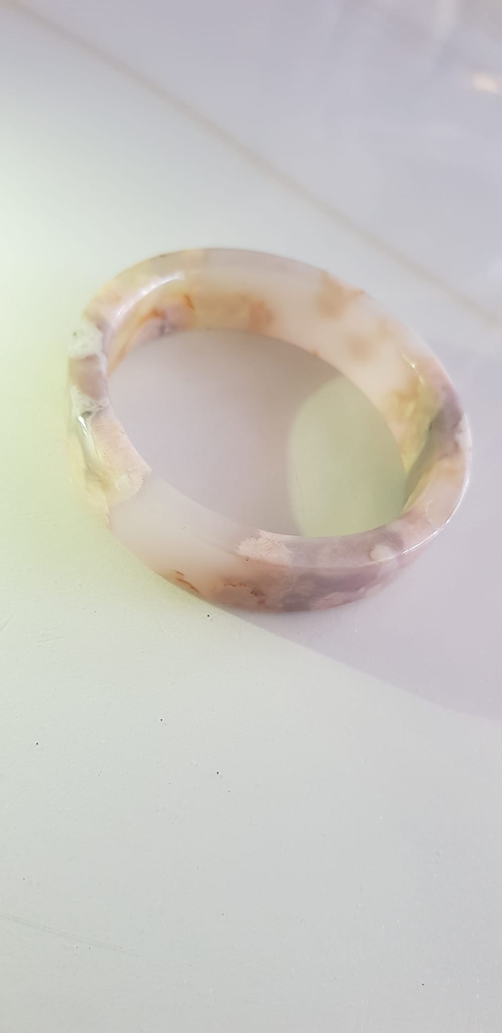 Vòng tay Nữ Bản Hẹ Mới Đá Mã Não Bông Tuyết Hồng nhẹ trắng trong bóng quá đẹp luôn ạ Ni 53mm x Cao 11mm x dầy 7mm Nữ Cân nặng 52kg - 55kg đeo