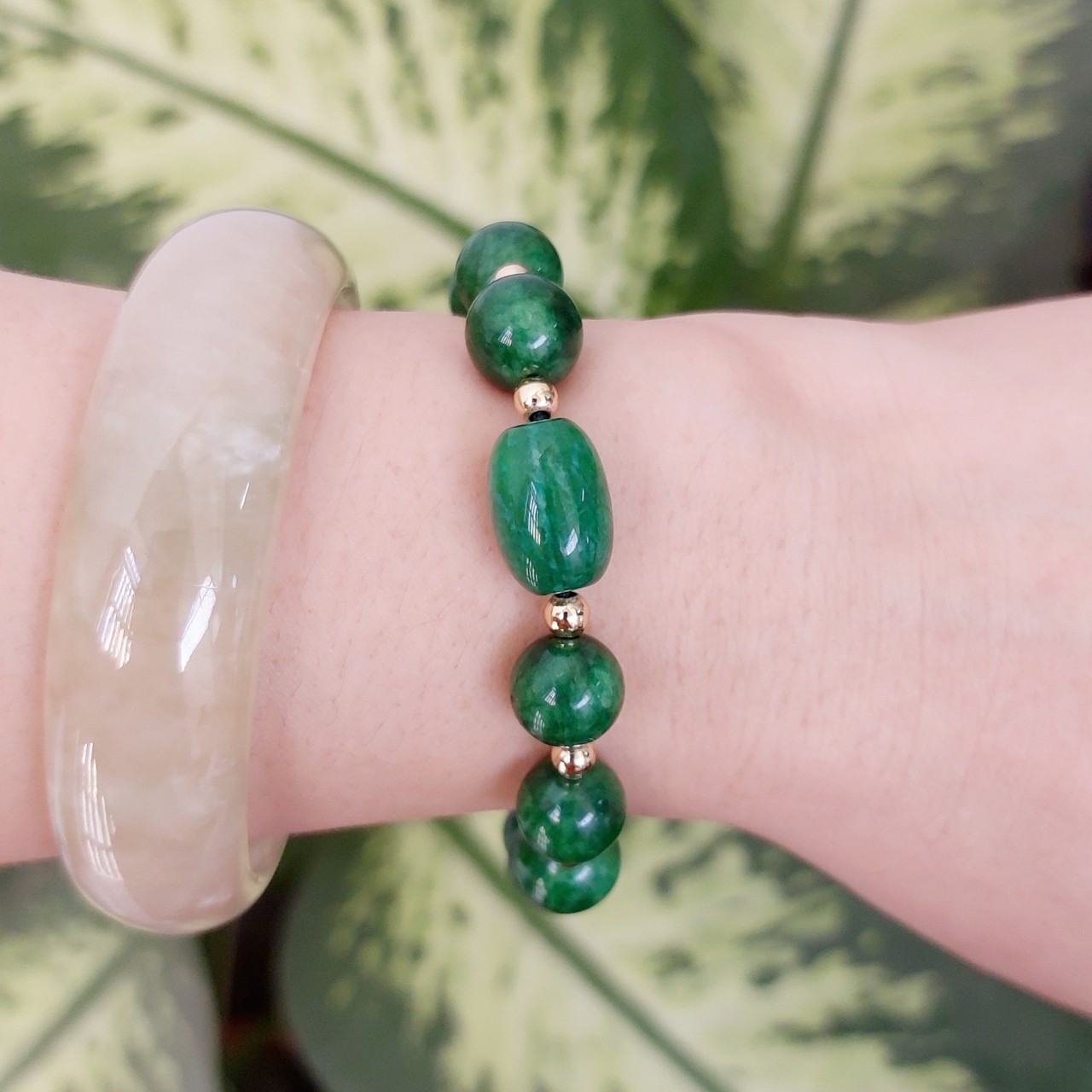 Vòng CẨM THẠCH DLý 49 Ni 49mm x cọng 7mm Màu Xanh Lá Đậm Hợp Nữ mệnh Mộc Hỏa Cân nặng 45kg -> 51kg đeo xinh tay ạ Sản phẩm này là tài sản