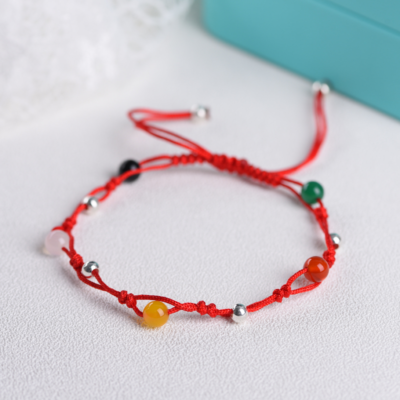 Vòng tay Nữ phong thủy gắn hạt đá phong thủy đa sắc kết dây thủ công