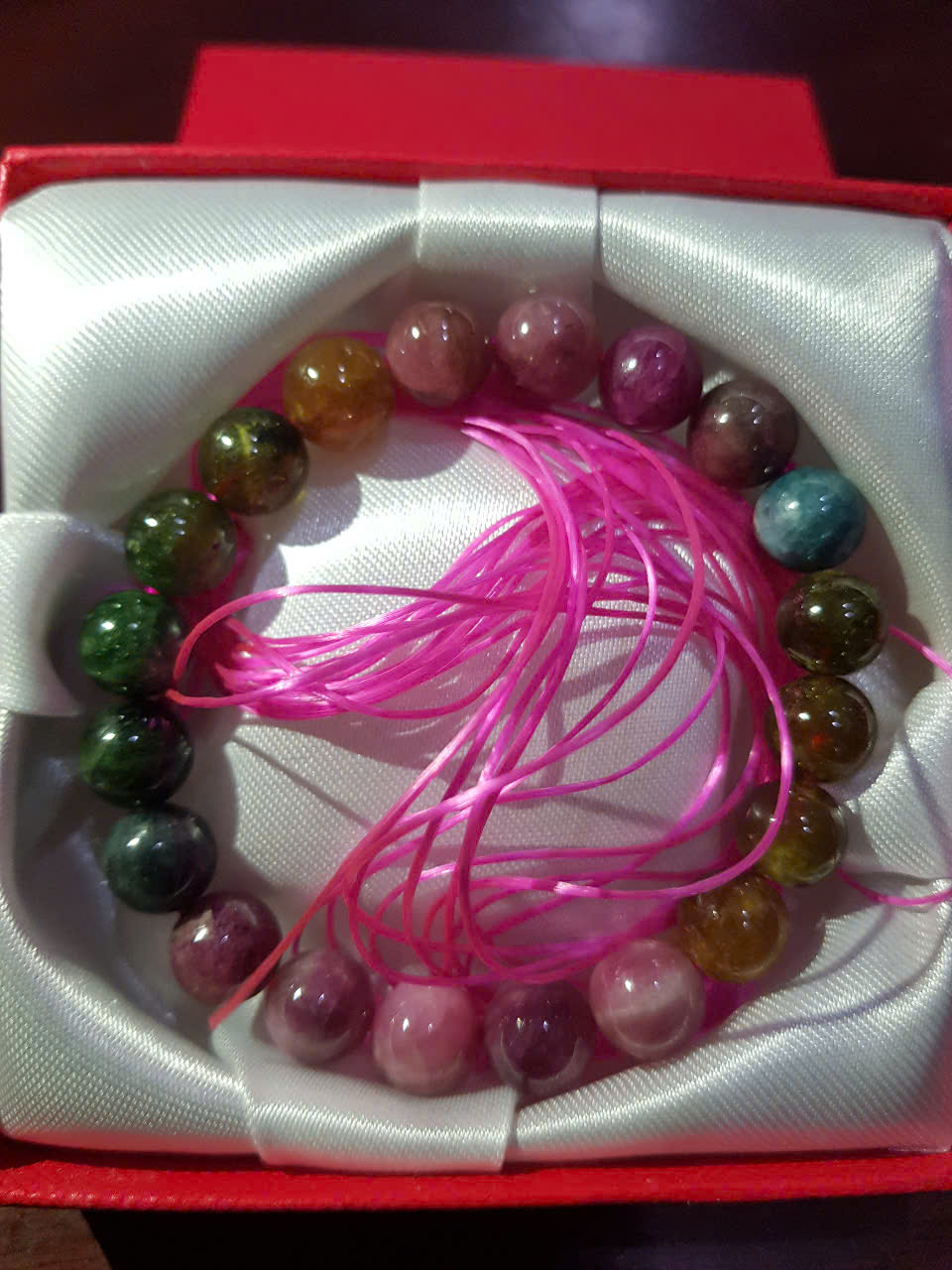 ✨Vòng tay Nữ tourmaline dâu tây tự nhiên đa sắc màu tươi đẹp thiệt sang size hạt 9,5mm vòng này hợp Nữ tất cả các mệnh đeo nhe ạ