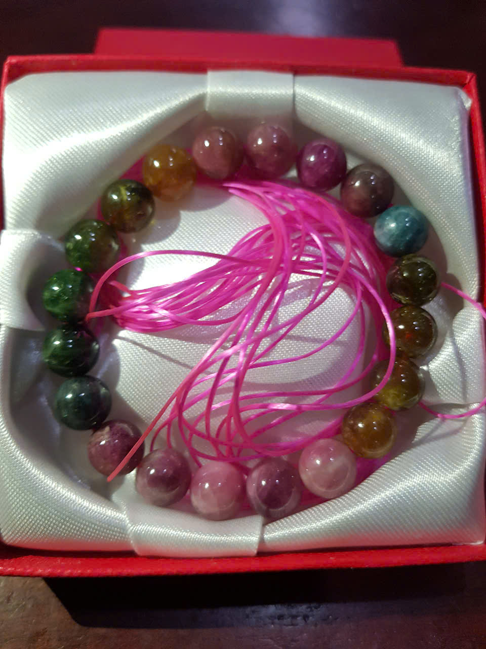 Vòng tay Nữ đá tourmaline dâu tây tự nhiên đa sắc tươi đẹp 9,5mm #godaptsunny #tourmaline #vòng