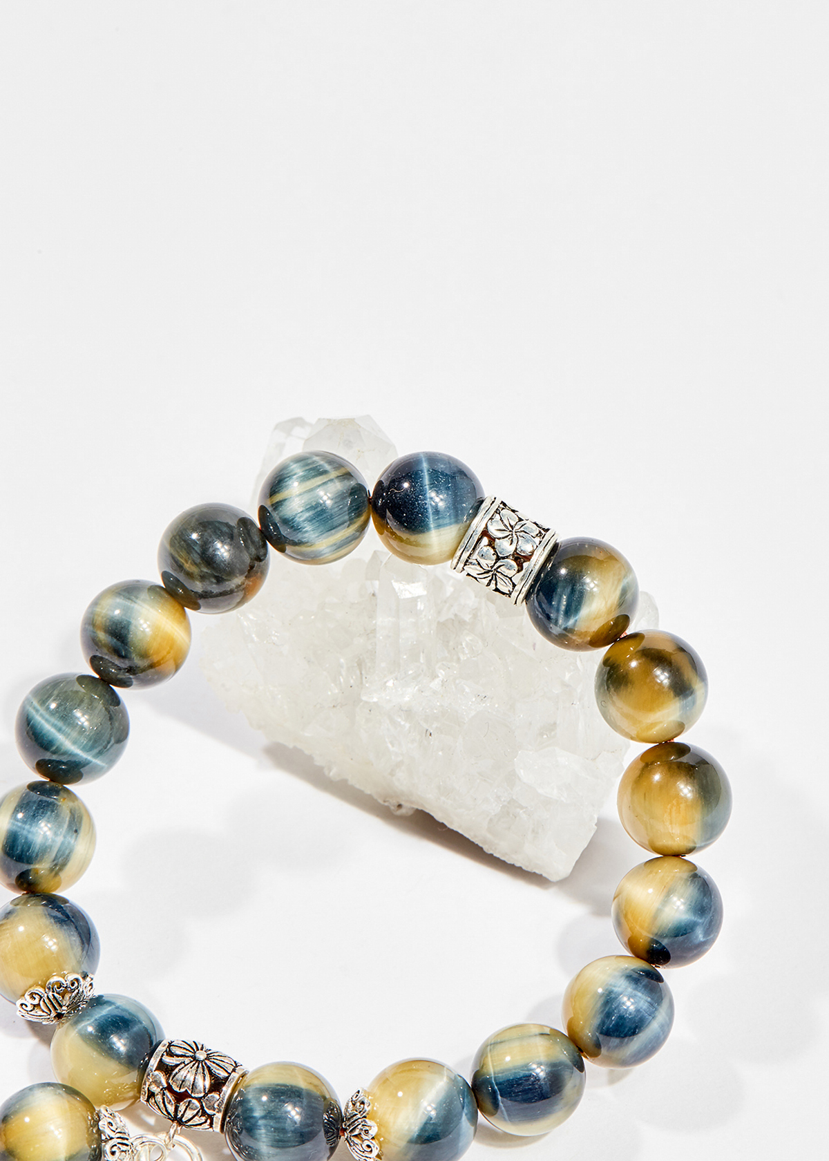 VÒNG TAY ĐÁ MẮT HỔ VÀNG TÂM : Đá Mắt Hổ có tên khoa học là Tiger Eye, là một loại tinh thể biến chất có màu sắc từ vàng, nâu đỏ đến xanh đen,
