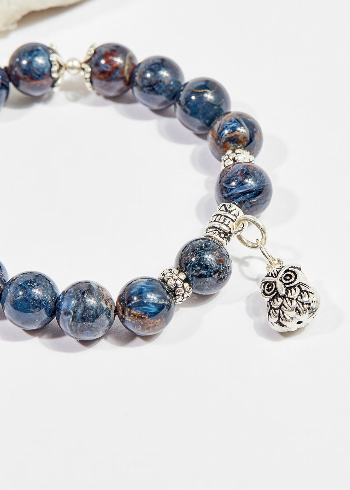 Vòng tay Pietersite được làm hoàn toàn từ đá thiên nhiên kết hợp cùng charm Cú Bạc dễ thương mà không kém phần độc đáo, ôm sát cổ tay thon dài mảnh khảnh, tăng thêm nét gợi cảm và duyên dáng cho các bạn gái.