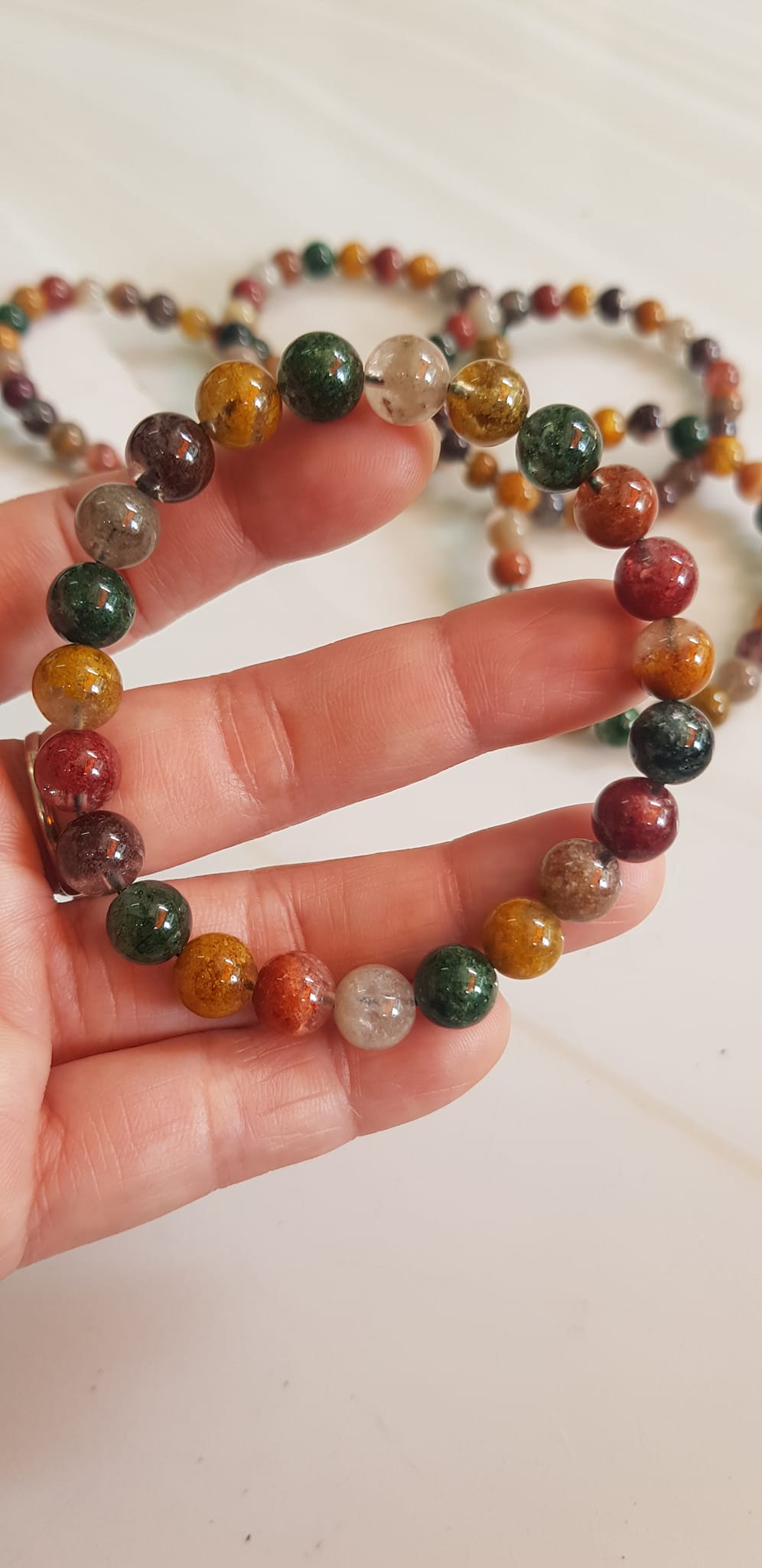 ✨Vòng tay phong thuỷ may mắn đá Thạch anh Ưu linh đa sắc Size hạt 8mm đá Ưu linh đẹp sang trọng của đá thạch anh tự nhiên đa sắc giúp xua tan mệt mỏi, đem đến năng lượng tích cực may mắn tài lộc cho gia chủ ,tăng sự quyến rũ sang trọng cho phái đẹp ạ