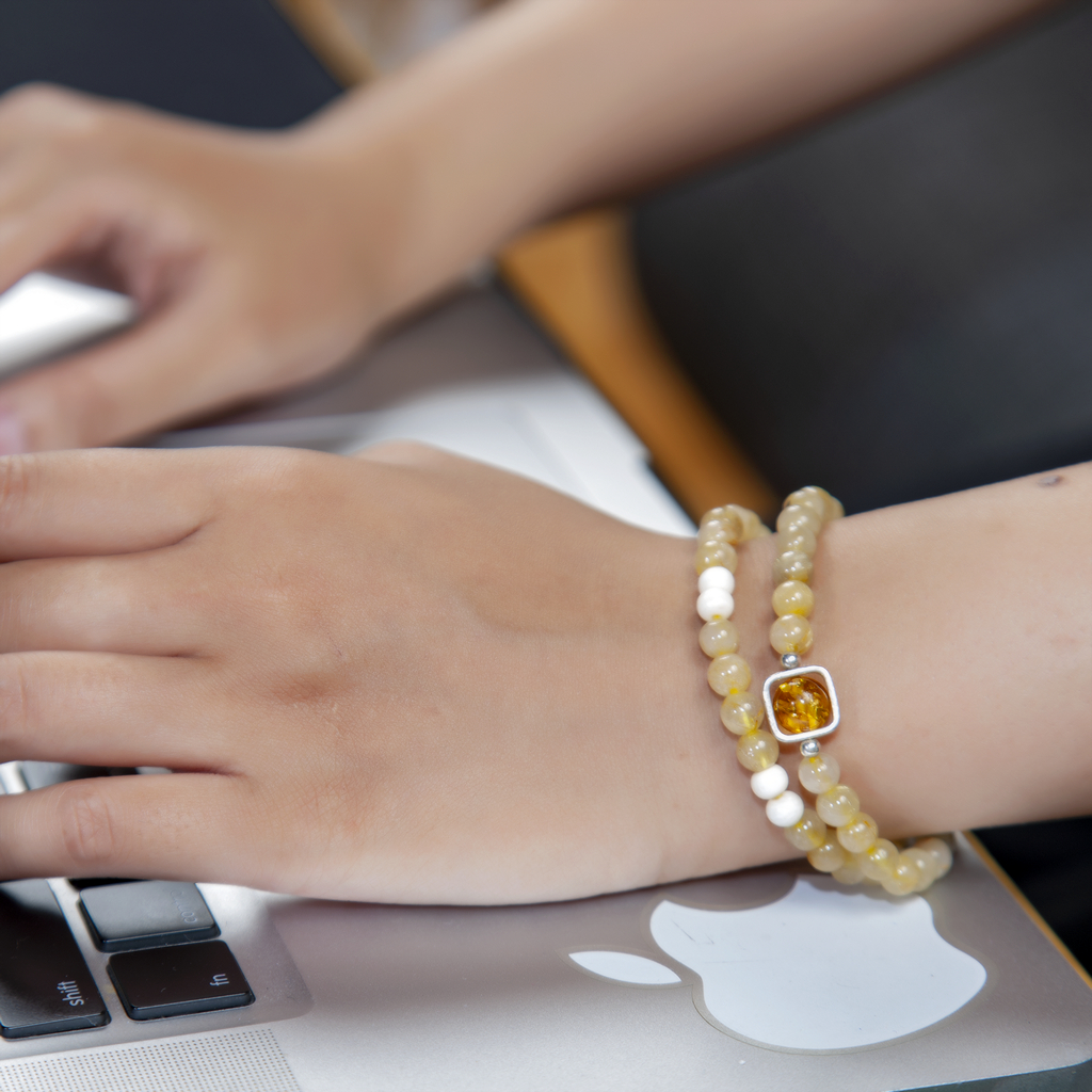 Chất liệu: Thạch anh tóc vàng và hổ phách tự nhiên