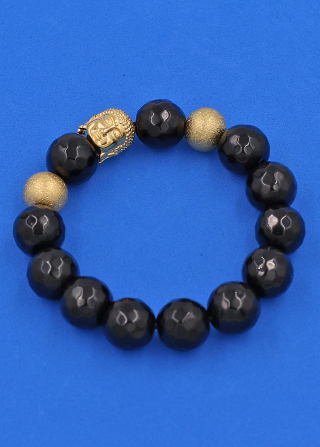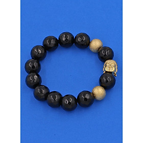 ✨Vòng tay Thạch Anh Đen Cắt Giác 14 ly - Vòng tay Phật A Di Đà inox vàng VTAEGNLVHB14 - hợp mệnh Mộc, mệnh Thủy - Vòng đeo tay size lớn