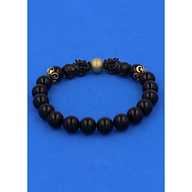 Vòng Tay Nam Đá Obsidian Phối Tỳ Hưu Bạc Mạ Vàng 24K Ngọc Quý Gemstones - Đá thủy tinh núi lửa (Obsidian) là một dạng khoáng vật vô định hình, chúng được hình thành do