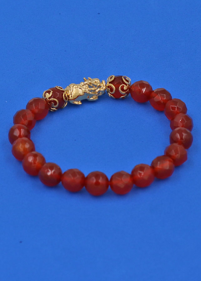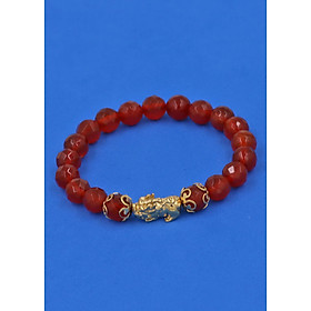 ✨Vòng tay Thạch Anh Đỏ cắt giác 8 ly - cẩn Tỳ Hưu Phong Thủy inox vàng VTAOGTHHKV8 - hợp mệnh Hỏa, mệnh Thổ