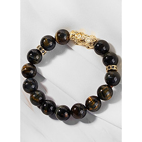 Vòng tay thạch anh mắt hổ phối tỳ hưu bạc mạ vàng 24k Ngọc Quý Gemstone