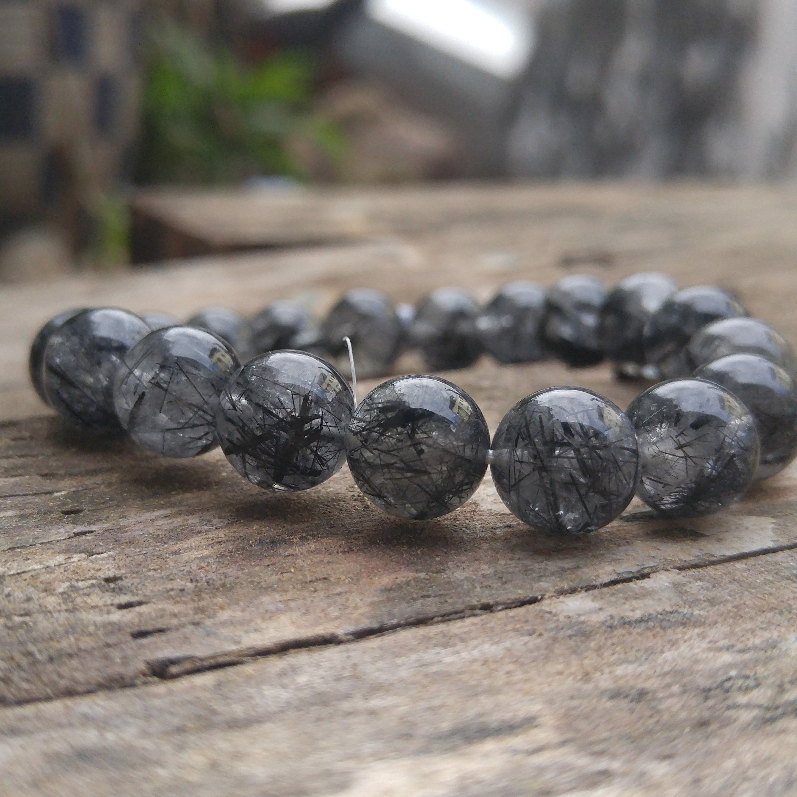 Vòng Tay Đá Thạch Anh Tóc Đen Black Rutilated Quartz Tự Nhiên 11mm. - Đá Thạch Anh Tóc Đen Black Rutilated Quartz Tự Nhiên - Thiết Kế Dây Co Giãn Thoải Mái. - Đá Tự