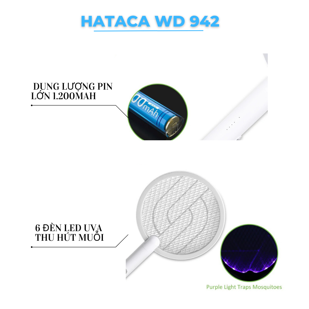 ✨Vợt muỗi kiêm đèn bắt muỗi 2 in 1 HATACA Model WD-942