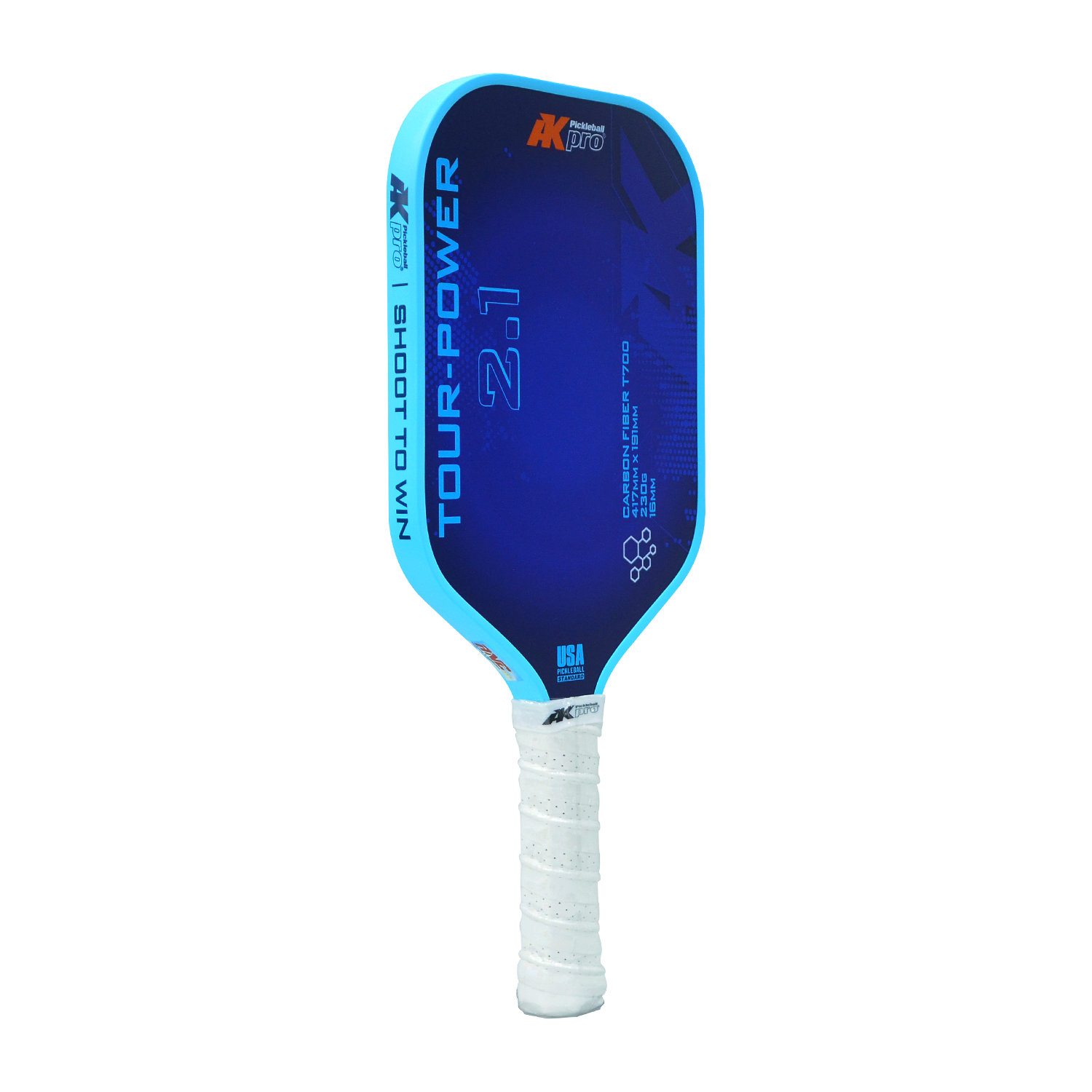 Vợt Pickleball TOUR-POWER 2.1 sử dụng carbon T700 mặt nhám nên tạo xoáy và kiểm soát bóng cực tốt. Loại vật liệu này cũng tạo ra những cú đánh mạnh và chính xác.