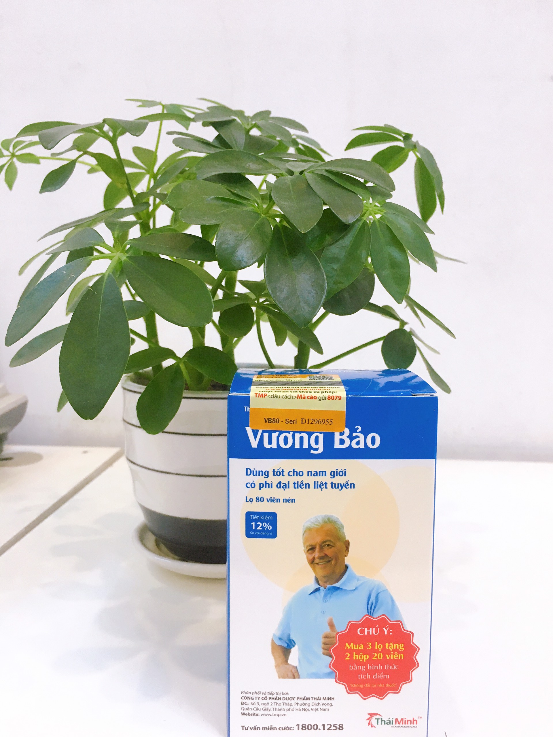 - Không dùng cho người có tác dụng không mong muốn hoặc mẫn cảm với bất kỳ thành phần nào của sản phẩm. Cách dùng Vương Bảo: Ngày uống 4 viên chia 2 lần, khi có kết quả tốt có thể giảm xuống 2 viên/ngày. Nên sử dụng sản phẩm trước bữa ăn 30 phút hoặc sau khi ăn 1 giờ. Nên sử dụng liên tục một đợt từ 3-6 tháng để có kết quả tốt nhất. Bảo Quản: Nơi khô ráo, thoáng mát và tránh ánh sáng trực tiếp Quy cách: lọ 80 viên Bộ Y tế – Cục ATVSTP cấp phép số: 5256/2017/ATTP-XNCB Sản phẩm của: Công ty Cổ Phần Công Nghệ Cao Thái Minh