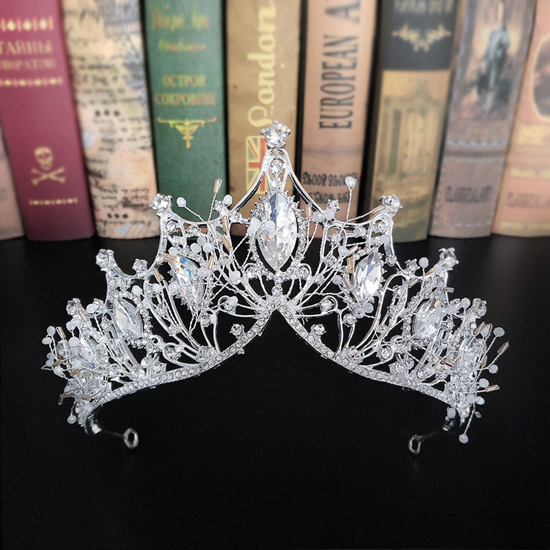 Vương miện đính đá lấp lánh cô dâu sang trọng tinh tế. Thiết kế đính đá lấp lánh phản chiếu ánh sáng qua từng góc nhìn, mạ bạc sáng bóng bền màu. Thích hợp trang