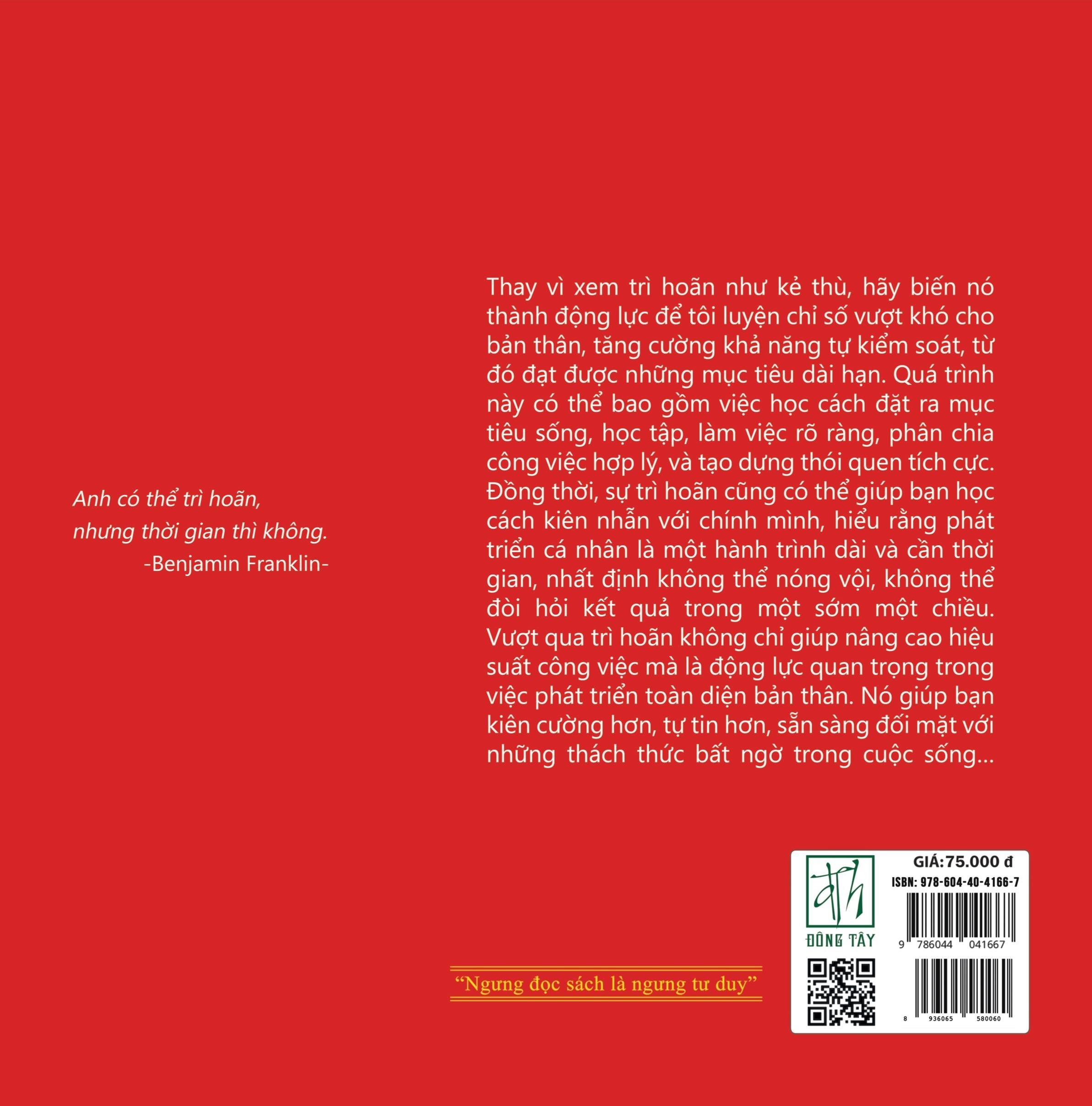 Cuốn sách không chỉ là một cẩm nang giúp bạn vượt qua trì hoãn, mà còn là chìa khóa mở ra cánh cửa thành công, là những lời nhắc nhở quý giá, thúc đẩy bạn hành động ngay từ bây giờ, không để trì hoãn kéo dài thêm một ngày nào nữa.