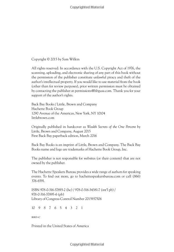 Wealth Secrets of the One Percent gets at the heart of our feelings about the 1% of top income earners and the roughly 0.0001% who achieve billionaire status: we love to hate them, but we'd love to be them. Wilkin's insight into the sources of wealth is thought-provoking and rigorous, and he reveals that behind almost every great fortune is a "wealth secret" -- a moneymaking technique designed to defeat the forces of market competition.