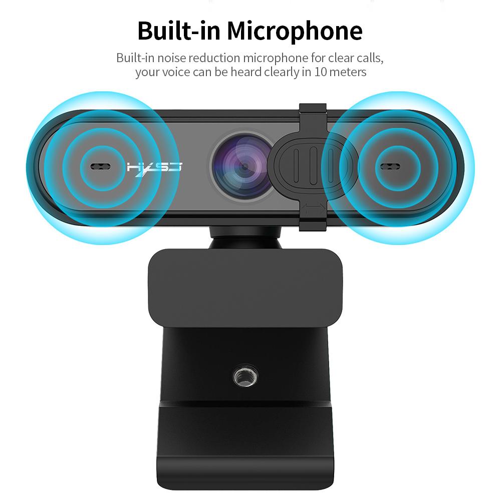 HXSJ brand HD 720P computer camera is equipped with built-in sound-absorbing microphone, and your voice can be clearly caught within 10 meters, which means you don't have to be close to the camera, convenient to