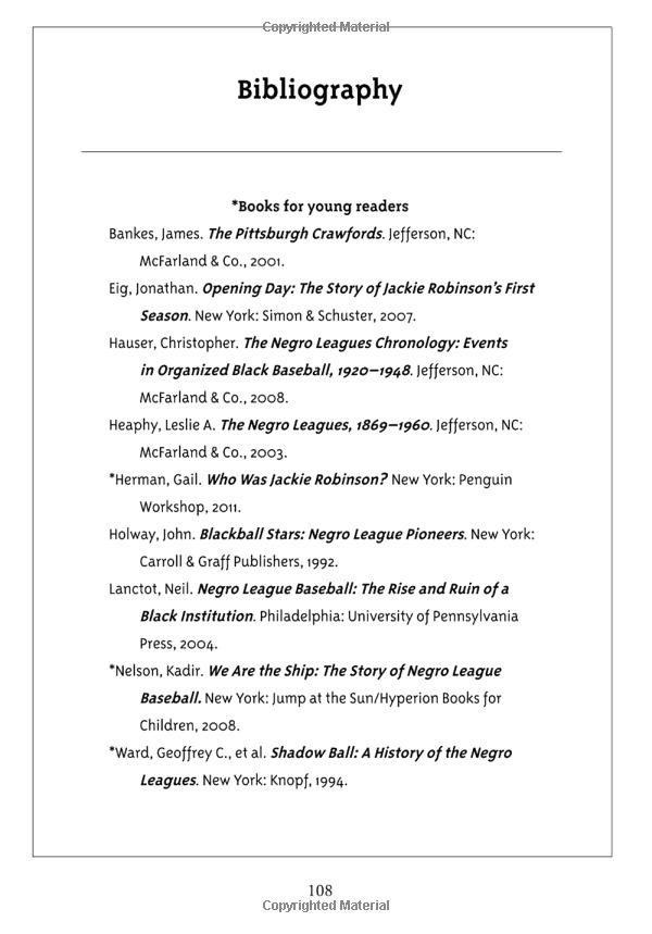 In America during the early twentieth century, no part was safe from segregation, not even the country's national pastime, baseball. Despite their exodus from the Major Leagues because of the colour of their skin, African American men still found a way to participate in the sport they loved. Author Varian Johnson shines a spotlight on the players, coaches, owners, and teams that dominated the Negro Leagues during the 1930s and 40s. Readers will learn about how phenomenal players like Satchel Paige, Josh Gibson, and of course, Jackie Robinson greatly changed the sport of baseball.