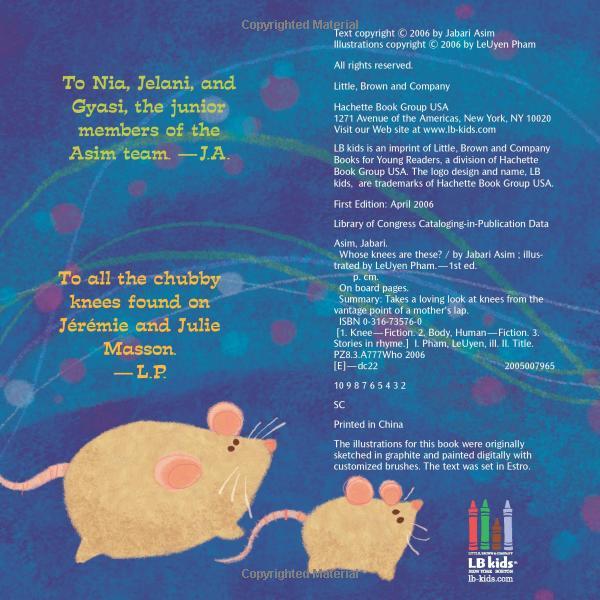 Mua tại TiktokThis interactive board book that is perfect for lap sharing TK. "Whose knees are these?" The whimsical illustrations hide the little boy's face until the final climactic spread. Rhyming text is paired with bold artwork full of toddler appeal reminiscent of the style of Caldecott-award winning illustrator Ezra Jack Keats .