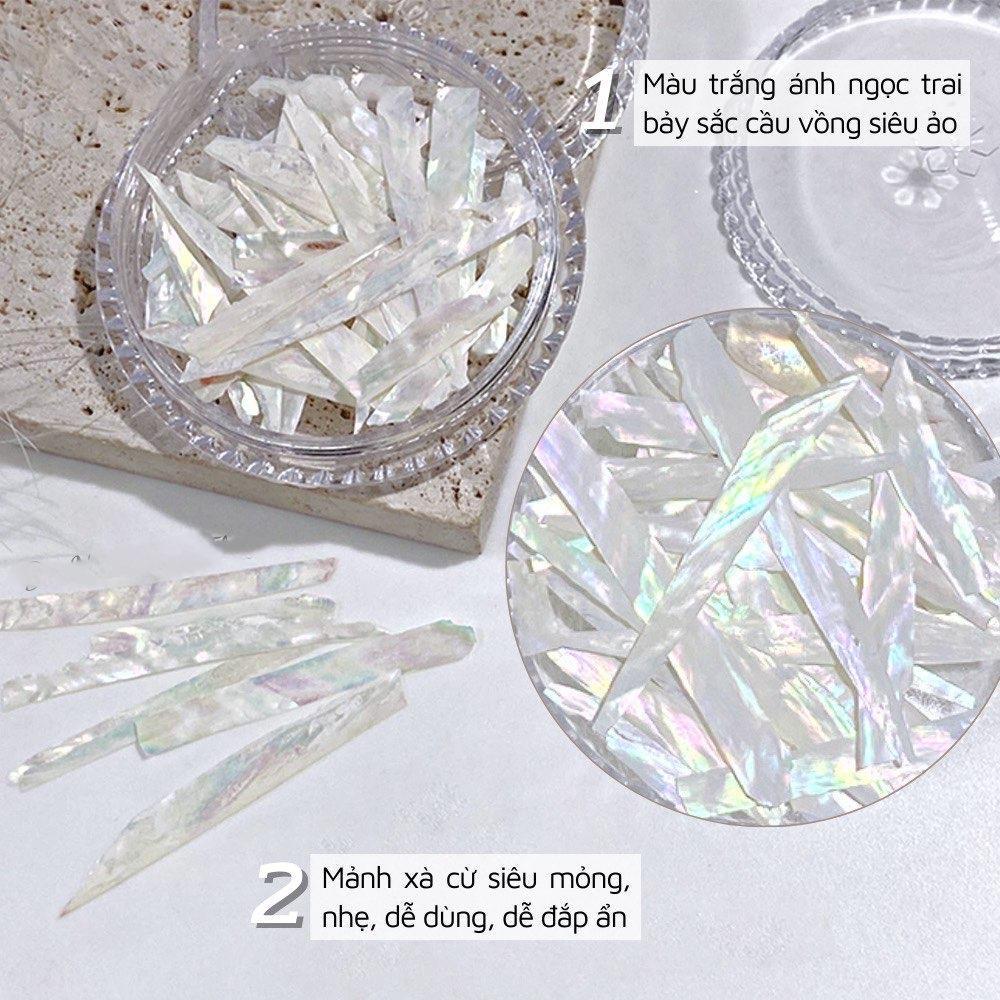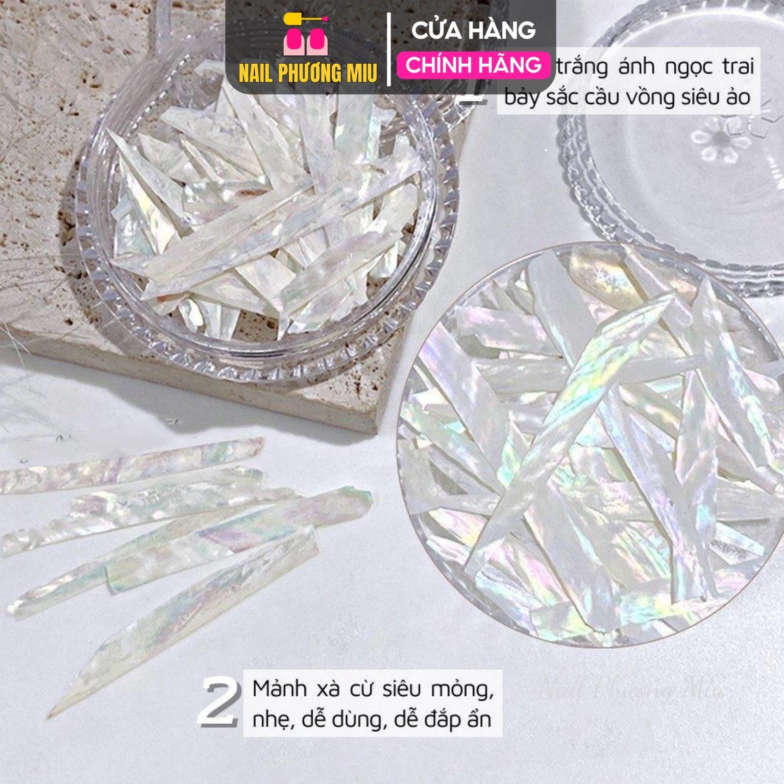 ✨Xà Cừ Trắng Ánh Trai Đính Đá Móng, Xà Cừ Nail Mảnh Mỏng Ẩn Móng Đắp Gel Đắp Bột Ẩn Chuyên Làm Nail - Nail Phương Miu Khảm Xà Sơn Gel