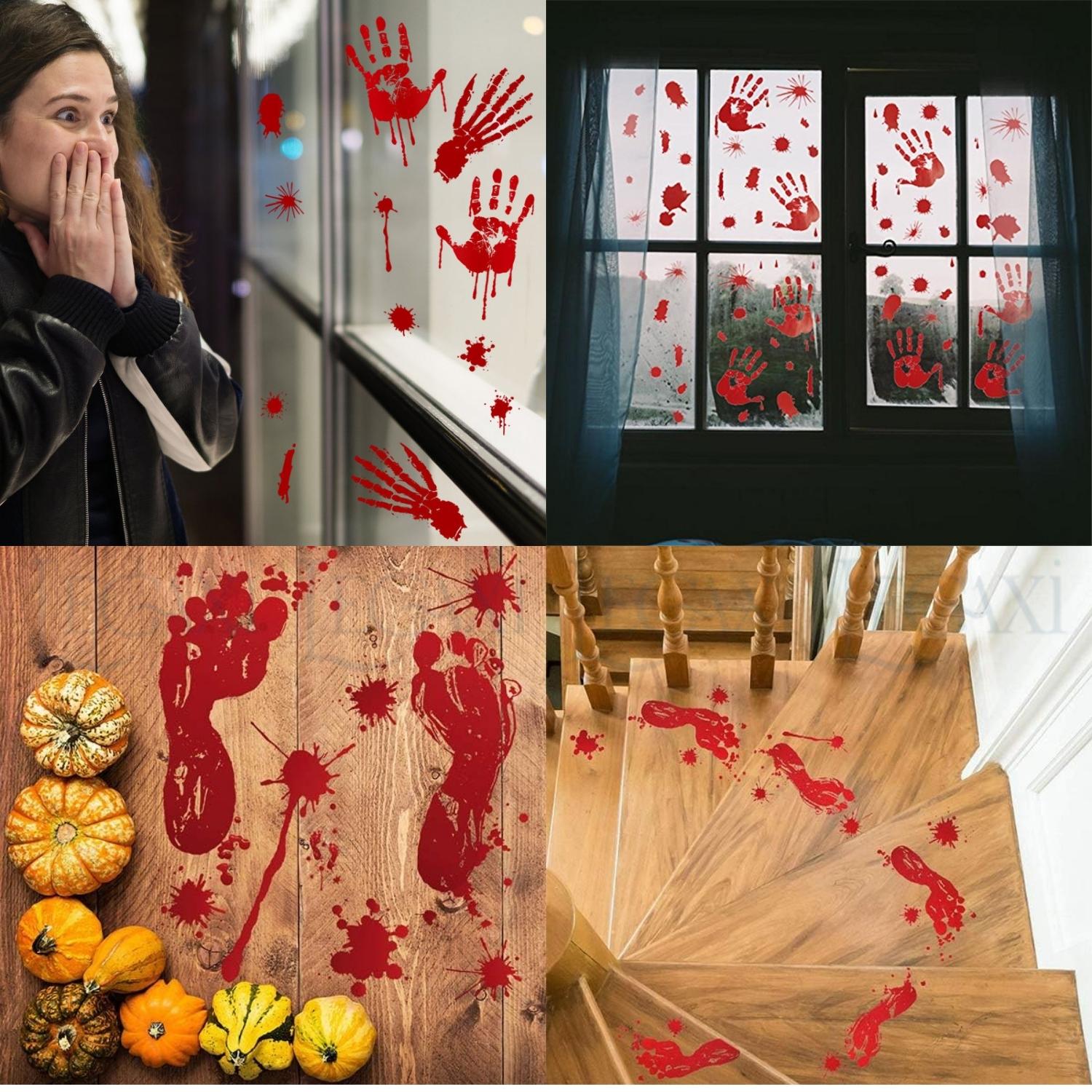 ✨Xăm dán kinh dị trang trí nhà cửa Halloween bàn tay máu vệt máu dấu chân máu Legaxi