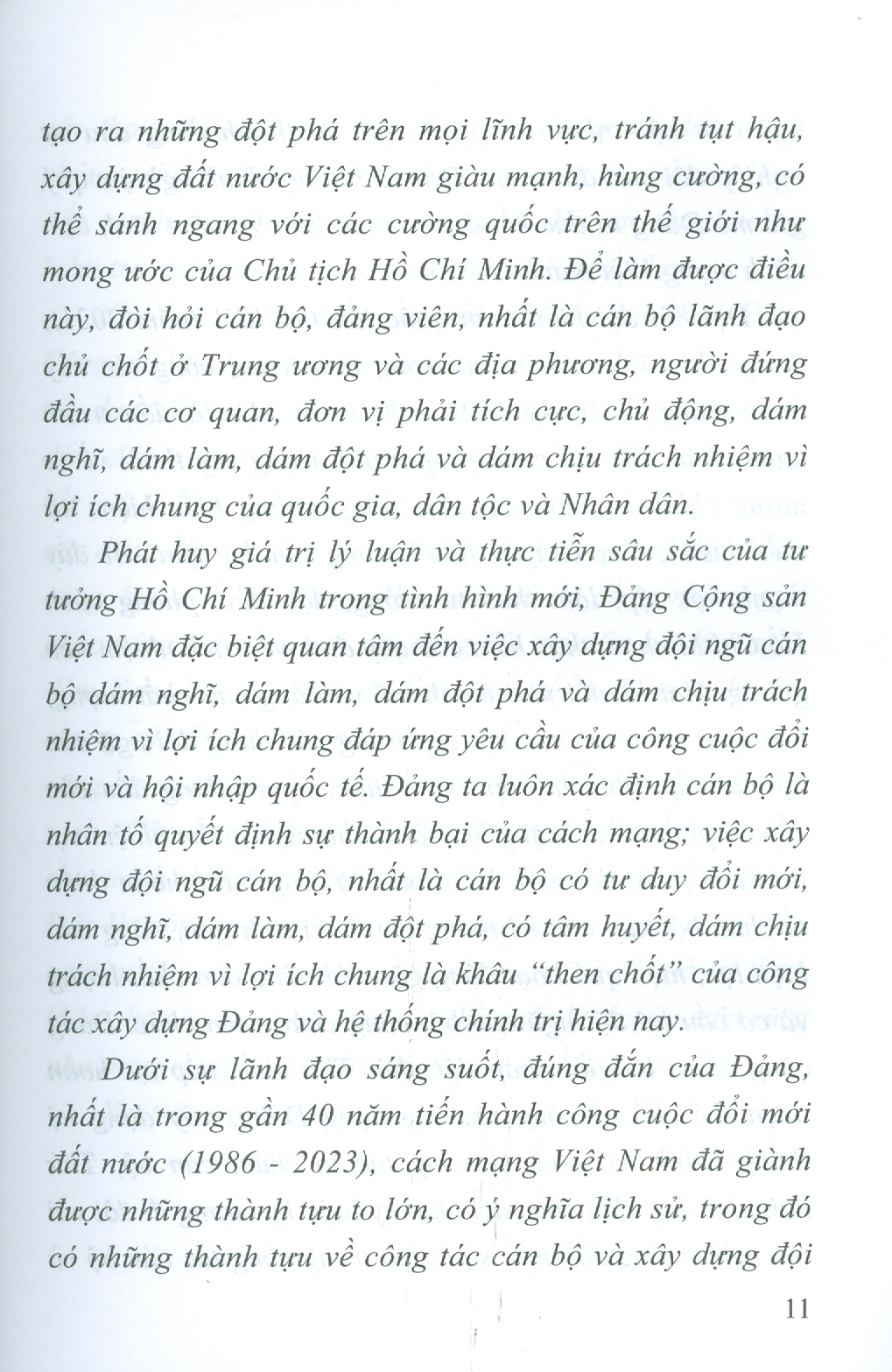 Xây dựng đội ngũ cán bộ dám nghĩ, dám làm và dám chịu trách nhiệm vì lợi ích chung theo tư tưởng HCM