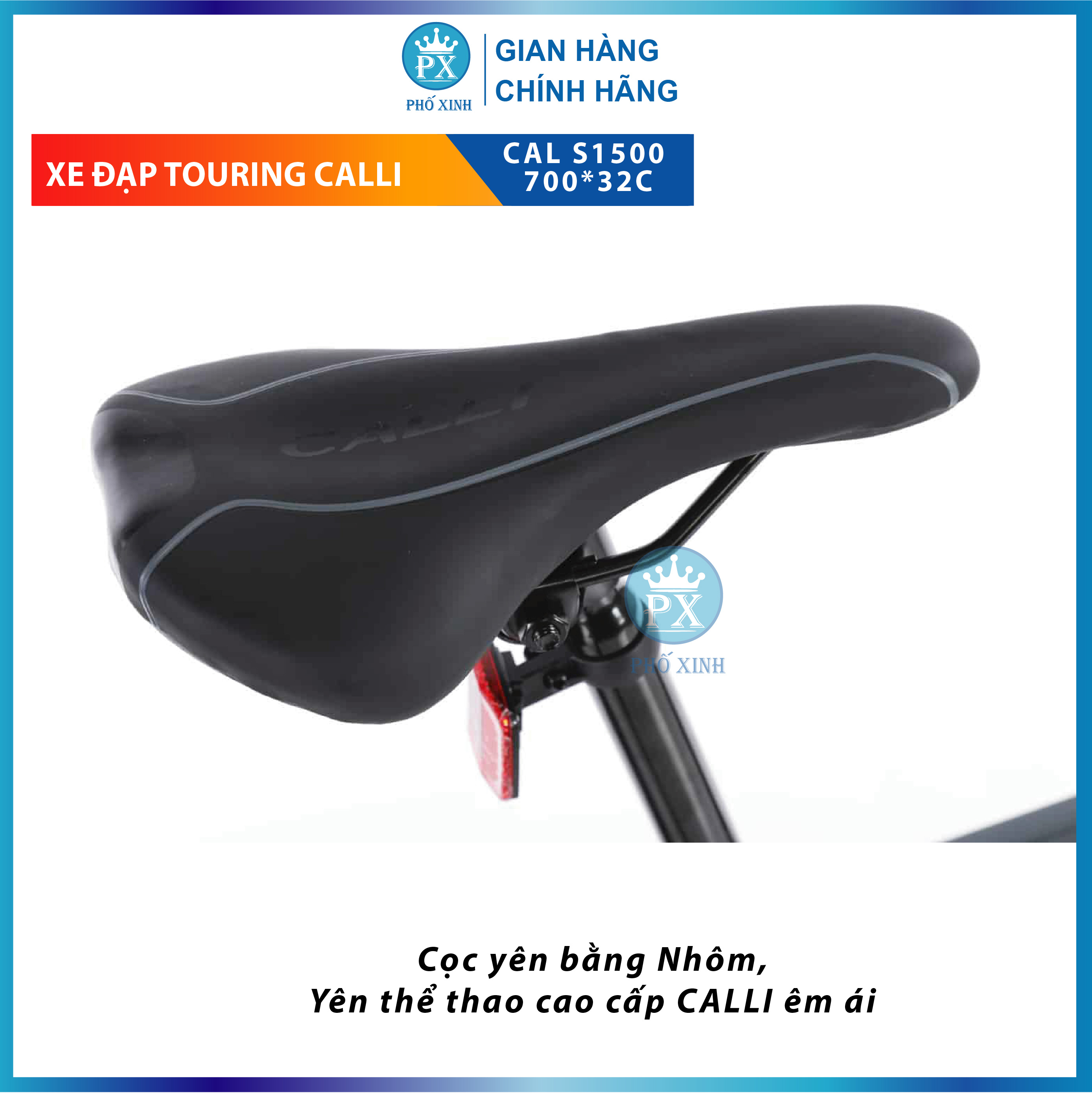 TOuring CALLI S1500 700C Những chiếc xe đạp đa năng đang ngày càng được ưa chuộng nhờ tính linh hoạt, tiện lợi của chúng. Xe đạp đường phố CALLI S1500 là một chiếc xe như thế, với khả năng di chuyển ổn định và bền bỉ trên đường bằng, đáp ứng trọn vẹn những nhu cầu hằng ngày của người sử dụng.   THÔNG SỐ KỸ THUẬT Khung: Hợp kim nhôm 6061, dây âm sườn, sơn tĩnh điện cao cấp Càng/Phuộc: Phuộc đơ thép cường lực CALLI Số: 21 tốc độ Tay đề: S H I M A N O EF41 37 Gạt đĩa: S H I M A N O TOURNEY TZ510 3S Củ đề: S H I M A N O TOURNEY TZ500 7S Đùi đĩa: Thép 3 tầng 28-38-48T Líp: ATA 7 tầng 14-28T Xích: FFC Z51 Trục giữa: Trục cốt vuông bạc đạn Phanh: Phanh đĩa cơ YINXING Vành: Nhôm 2 lớp CALLI Mayer: Thép thể thao Lốp: KENDA 70032C Bàn đạp/Pê-đan: Nhựa Tay lái/Ghi-đông: Nhôm CALLI tay ngang Pô-tăng: Nhôm CALLI Cọc yên: Thép Yên: Yên thể thao cao cấp CALLI TẠI SAO NÊN MUA XE ĐẠP TẠI PHỐ XINH? CỬa hàng Phố xinh là NPP xe đạp cho các thương hiệu hàng đầu như Giant, TWITTER, Califa Catani, Vicky, Chevaux, Calli, Catani… Phố Xinh không chỉ bán sản phẩm, chúng tôi muốn làm tốt hơn qua 04 việc sau: Hướng khách hàng đến lựa chọn phù hợp nhất Có trách nhiệm đảm bảo sản phẩm đến tay khách hàng là chính hãng. Tiết kiệm chi phí cho khách hàng qua việc tối ưu chuỗi cung ứng. Tiếp thu nhanh và xử lý đến cùng các sự cố về SP