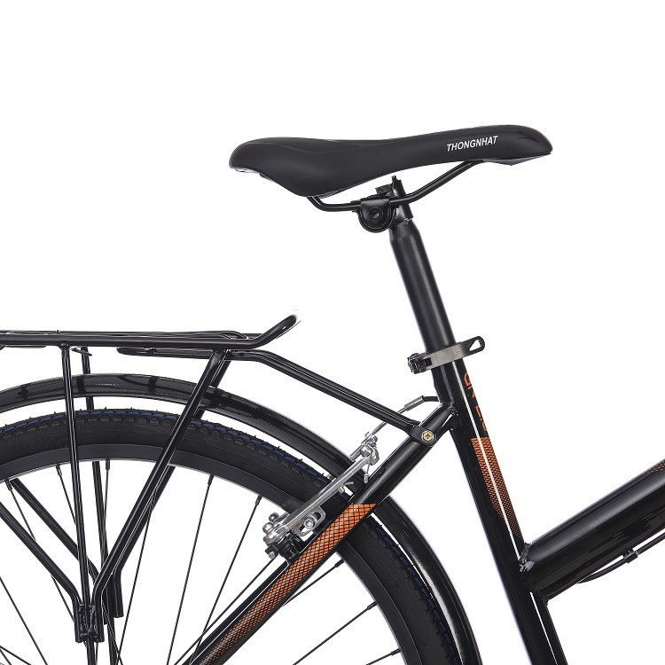 Thiết kế tối giản, gọn đẹp Xe đạp đường phố thể thao Thống Nhất GN2.0 - 26 inch có kiểu dáng hiện đại, đường nét tinh tế, tông màu ghi, đen và cam mang đến cho bạn nhiều màu sắc để lựa chọn phù hợp với sở thích của mình. Mẫu xe đạp này ứng dụng công nghệ sơn tĩnh điện giúp duy trì tính thẩm mỹ cao, cho khả năng chống chịu tốt trước các điều kiện môi trường khác nhau. Đáp ứng nhu cầu chơi thể thao, làm phương tiện đi học, đi làm thường ngày của người trưởng thành có chiều cao trung bình khoảng 155 cm - 170 cm. Sườn thép gia công chắc chắn Với khung bằng thép có độ bền cao, giữ cấu trúc xe vững chãi, cho khả năng chịu tải trọng toàn xe lên tới 110 kg. Thiết kế dây phanh được đặt dọc theo sườn xe một cách gọn gàng giúp xe đạp đường phố Thống Nhất trông đẹp mắt và hỗ trợ cho việc bảo dưỡng thuận tiện hơn. Chuyển hướng xe linh hoạt với ghi đông ngang Giống như khung sườn, ghi đông cũng được làm từ thép, vật liệu giúp tay lái cứng cáp kết hợp thiết kế ngang đơn giản giúp bạn kiểm soát hướng đi, lái xe dễ dàng. Bộ phận tay nắm được gắn chặt vào ghi đông, chế tạo cho độ bám cao để bạn nắm ổn định, không sợ trượt tay trong khi lái xe đạp đường phố Hệ thống phanh nhạy bén, sử dụng an toàn Tích hợp phanh vành trước và sau cho phản hồi nhanh mỗi khi bạn thắng xe, nhờ đó giúp đảm bảo cho người lái xe an toàn mỗi khi cần dừng xe lại hoặc xử lý tình huống khẩn cấp. Ngoài ra, với kết cấu đơn giản, hệ thống phanh dễ thay mới và bảo trì, giúp tiết kiệm chi phí và thời gian cho bạn tối đa. Phuộc cứng hạn chế rung lắc Mẫu xe đạp Thống Nhất này được trang bị phuộc trước bằng thép rắn chắc giúp giữ cho xe di chuyển ổn định từ mặt đường phẳng cho đến những đoạn đường gồ ghề, khó di chuyển. Yên xe mềm mịn, ngồi thoải mái mọi lúc Chất liệu da cho yên xe ngồi êm ái trong suốt thời gian bạn lái xe, dễ dàng lau chùi khi bám bẩn. Yên phụ cứng cáp, chịu lực tốt, đáp ứng tải trọng 30 kg cho bạn chở hàng hóa hoặc người tiện lợi. Di chuyển mượt mà với bánh xe 26 inch Cả hai bánh xe đều có kích thước 26 inch phù hợp với cấu trúc của toàn bộ xe khi bạn lái nhanh hay chậm đều hoạt động ổn định, nhịp nhàng. Bộ phận lốp xe 26"x1 3/8 sử dụng bền, trên bề mặt có nhiều rãnh giúp tăng tính ma sát cho quá trình lái xe thêm vững vàng. Vành xe bằng hợp kim nhôm có tính chống oxy hóa, chống ăn mòn tốt, khối lượng nhẹ nên cho tổng thể xe nhẹ hơn, di chuyển dễ dàng hơn khi đi qua những địa hình khó khăn. Tiện ích đi kèm Sử dụng đèn phản quang giúp phản chiếu ánh sáng, bảo vệ người dùng tốt hơn khi đi qua những đoạn đường khuất trong bóng tối. Có chân chống thiết kế ở vùng bánh xe sau giúp cho xe tự đứng vững, không bị nghiêng, ngã mà không cần bất kỳ điểm tựa nào. Thông tin chung