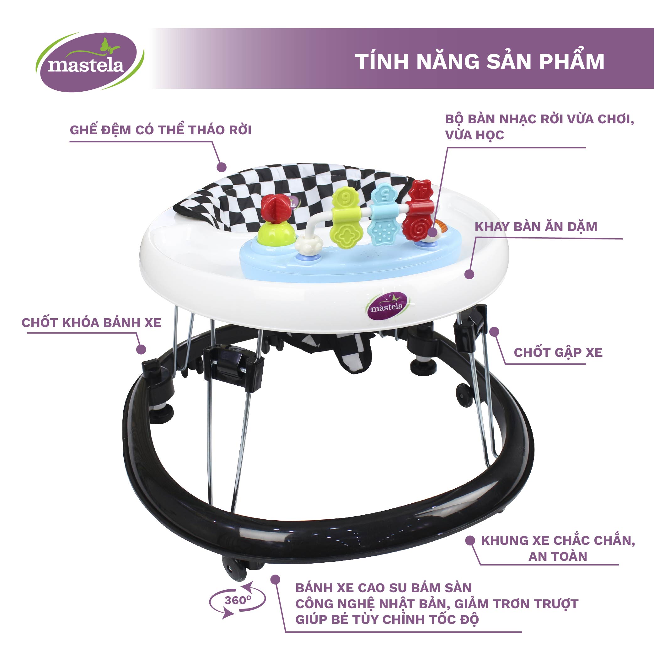 Xe tròn tập đi có đồ chơi và nhạc cho bé Mastela MSTL W2002 siêu nhẹ xoay 360 độ, mặt bàn ăn dặm