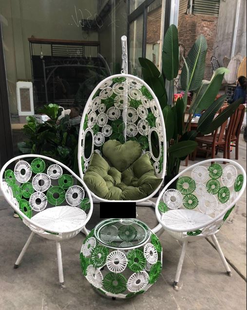 - Chất liệu: Xích đu được làm từ khung sắt sơn tĩnh điện, cuốn mây nhựa cao cấp, nhựa PE giả mây độ bền cao chống chịu được mọi thời tiết khắc nhiệt.