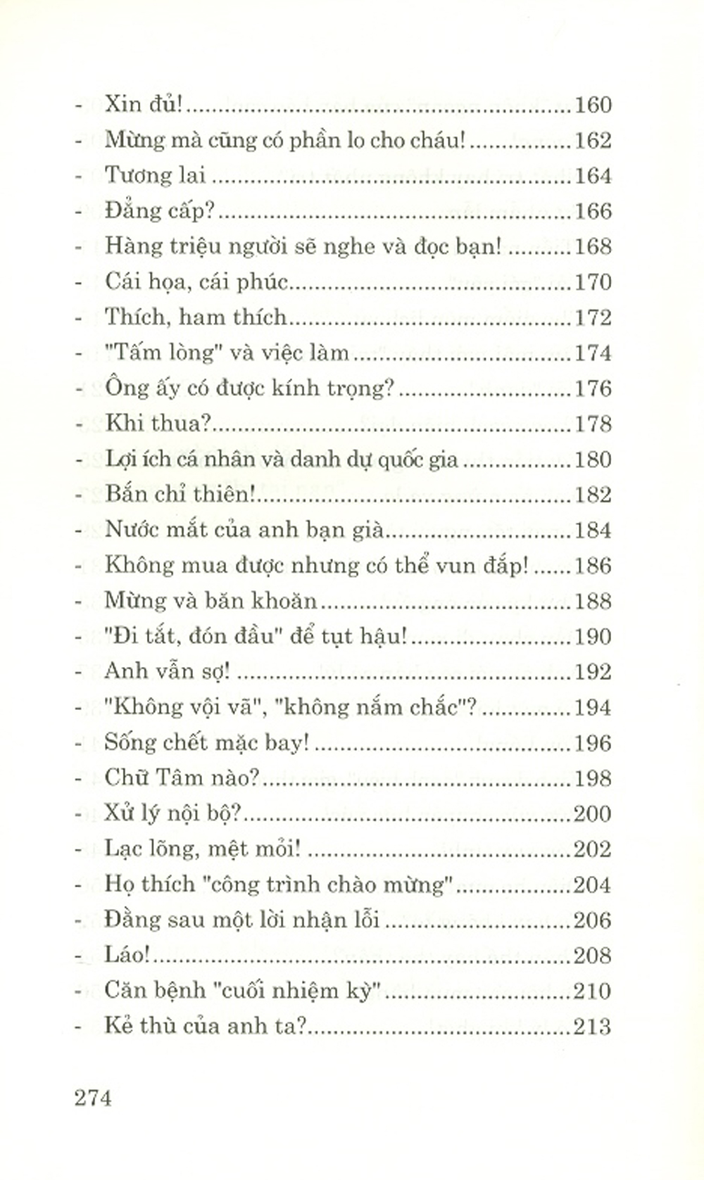 Trong tập sách này, nhiều câu chuyện, nhiều vấn đề, tác giả dường như chỉ làm công việc khơi nó lên để mời người đọc tham dự vào, tự khám phá và giải quyết. Trong