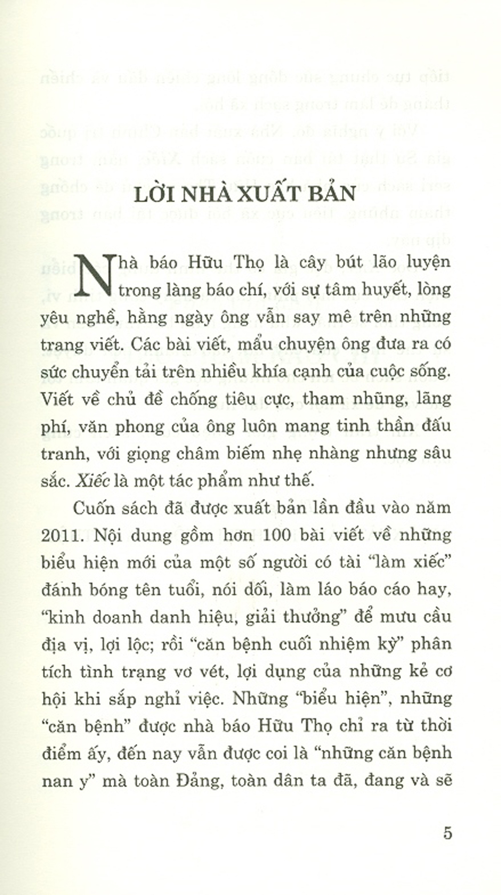 Cuốn sách gồm hơn 100 tiểu phẩm được viết từ những năm 2009-2011, về những biểu hiện mới của một số người có tài “làm xiếc” đánh bóng tên tuổi, nói dối, làm láo báo cáo hay, “kinh doanh danh hiệu, giải thưởng” để mưu cầu địa vị, lợi lộc; rồi “căn bệnh cuối nhiệm kỳ” phân tích tình trạng vơ vét, lợi dụng của những kẻ cơ hội khi sắp nghỉ việc. Những “biểu hiện”, những “căn bệnh” được nhà báo Hữu Thọ chỉ ra từ thời điểm ấy, đến nay vẫn được coi là “những căn bệnh nan y” mà toàn Đảng, toàn dân ta đã, đang và sẽ tiếp tục chung sức đồng lòng chiến đấu và chiến thắng để làm trong sạch xã hội.