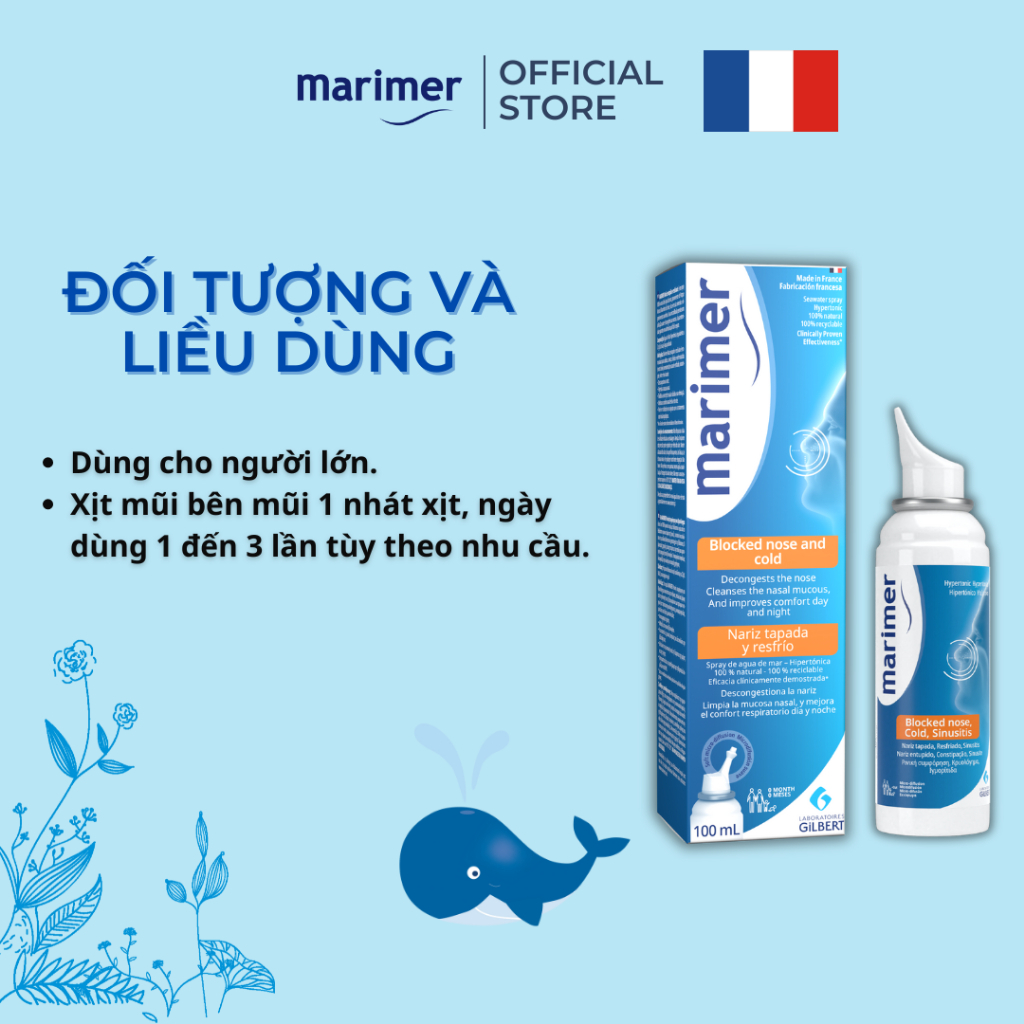 THÀNH PHẦN: Nước biển đẳng trương, nước tinh khiết. CHỈ ĐỊNH: Sử dụng hàng ngày, - Marimer Daily Nasal Hygiene: dành cho người lớn và trẻ em từ 3 tuổi. - Marimer Baby Daily Nasal Hygiene: dành cho trẻ