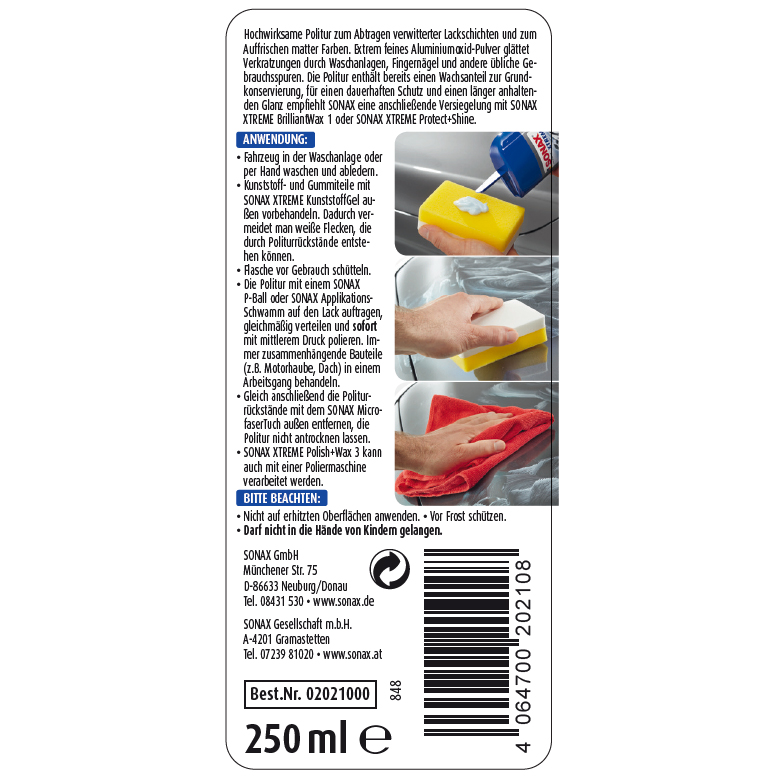 Kem đánh bóng, xóa xước và bảo vệ sơn xe Sonax Xtreme Polish & Wax 3 202100 250ml | Ahamart.com.vn