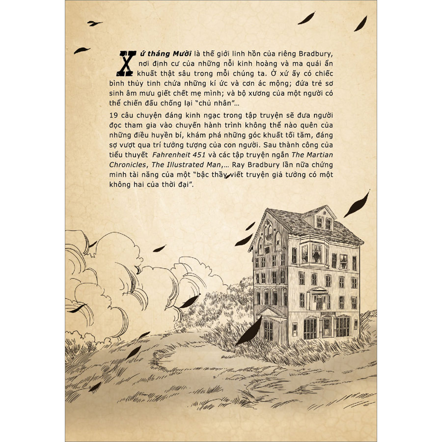 Xứ tháng Mười là thế giới linh hồn của riêng Bradbury, nơi định cư của những nỗi kinh hoàng và ma quái ẩn khuất thật sâu trong mỗi chúng ta. Ở xứ ấy có chiếc bình thủy tinh chứa những kí ức và cơn ác mộng; đứa trẻ sơ sinh âm mưu giết chết mẹ mình; và bộ xương của một người có thể chiến đấu chống lại “chủ nhân”…
