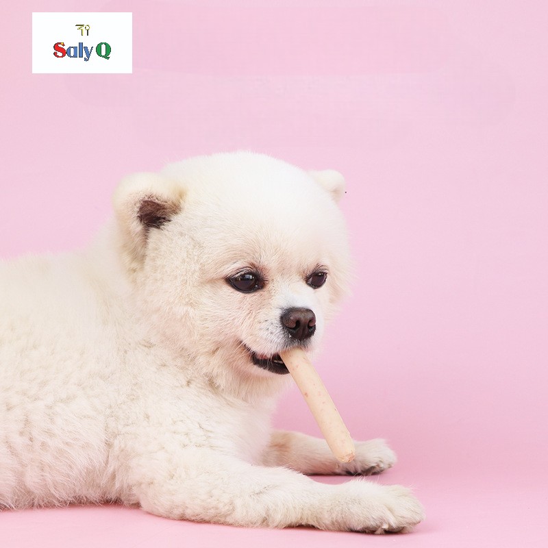 Que đúc từ bột bắp giúp thú cưng dễ tiêu hóa. Giá trị dinh dưỡng cao với nhiều vitamin và khoáng chất. Kết hợp thịt gà quấn bên ngoài bổ sung thêm Protein cho chó.