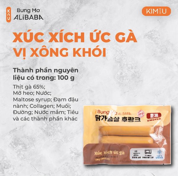 Hướng dẫn bảo quản: Bảo quản trong tủ mát ở nhiệt độ -18 độ C sau khi nhận sản phẩm. Ăn ngay trong vòng 24 giờ. Hạn sử dụng: 18 tháng kể từ ngày sản xuất Trọng lượng: 100g Thành phần: Thịt gà 65%; Mỡ heo; Nước;; Maltose syrup; Đạm đậu nành; Collagen; Muối; Đường; Nước mắm; Tiêu và các thành phần khác Thông tin dinh dưỡng: Calories 201kcal, Fat 12.92g, Protein 17g, Carbohydrate 4.48g, Cholesterol 0.023g