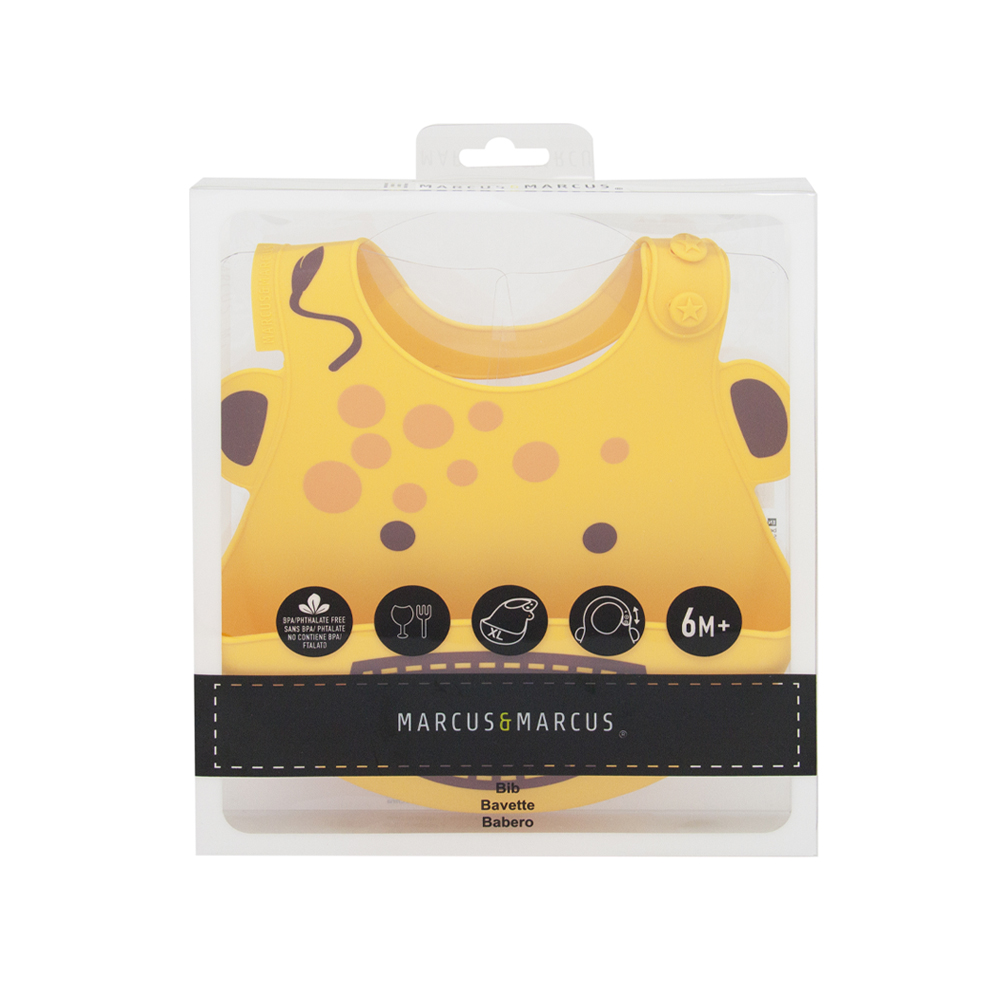 Yếm silicon ăn dặm Marcus & Marcus được thiết kế hiện đại, tiện lợi, đặc biệt thoải mái, dễ dàng cho bé sử dụng, khuyến khích bé tham gia tích cực vào bữa ăn. Họa tiết theo chủ đề những con vật tinh nghịch, ngộ nghĩnh như sư tử Marcus, hươu cao cổ Lola, heo con Pokey, cá voi Willo, voi con Ollie và hà mã Lucas với màu sắc đa dạng, sinh động làm cho bé thích thú hơn với mỗi bữa ăn. Bé sẽ được khám phá chơi đùa với đồ ăn thỏa thích mà không lo bị dính bẩn, kích thích sự thèm ăn và giúp bé ăn ngon miệng hơn.