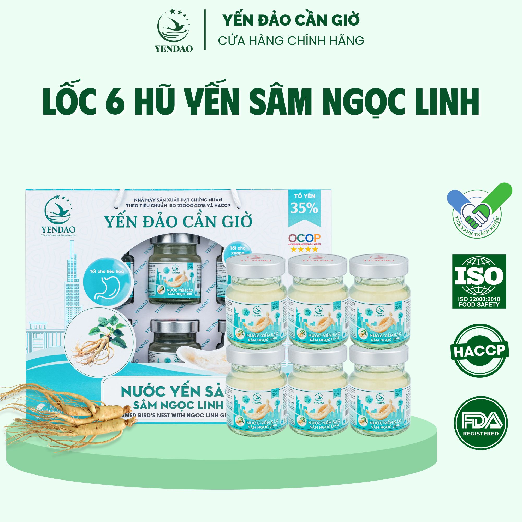 • Tên sản phẩm: Yến Đảo - Hũ Yến Sào Sâm Ngọc Linh Hỗ Trợ Bổ Phổi, Bổ Huyết, Tăng Cường Sức Đề Kháng 6 Hộp 70ml