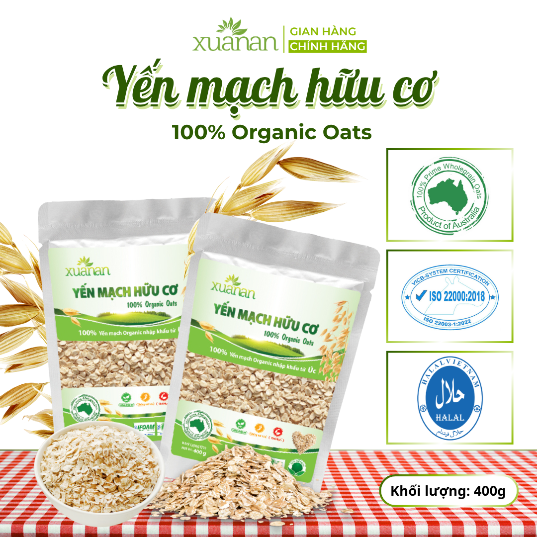 Yến Mạch Hữu Cơ là loại ngũ cốc giàu chất xơ, đạm, vitamin và dưỡng chất tự nhiên. Được mệnh danh là Vua của Ngũ cốc. 100% Yến Mạch Hữu Cơ Xuân An được nhập khẩu từ ÚC.