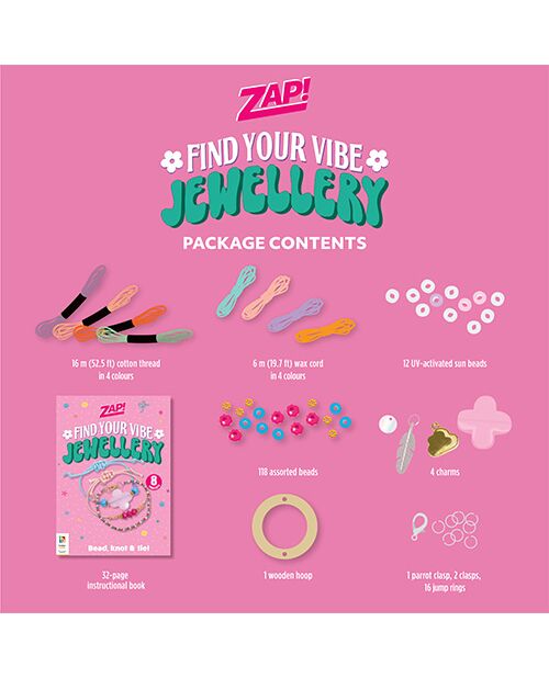 Zap! Find Your Vibe Jewellery Get ready to make jewellery that’s 100% YOU! This kit contains everything you need to create five different pieces of jewellery plus inspirational ideas for more in the
