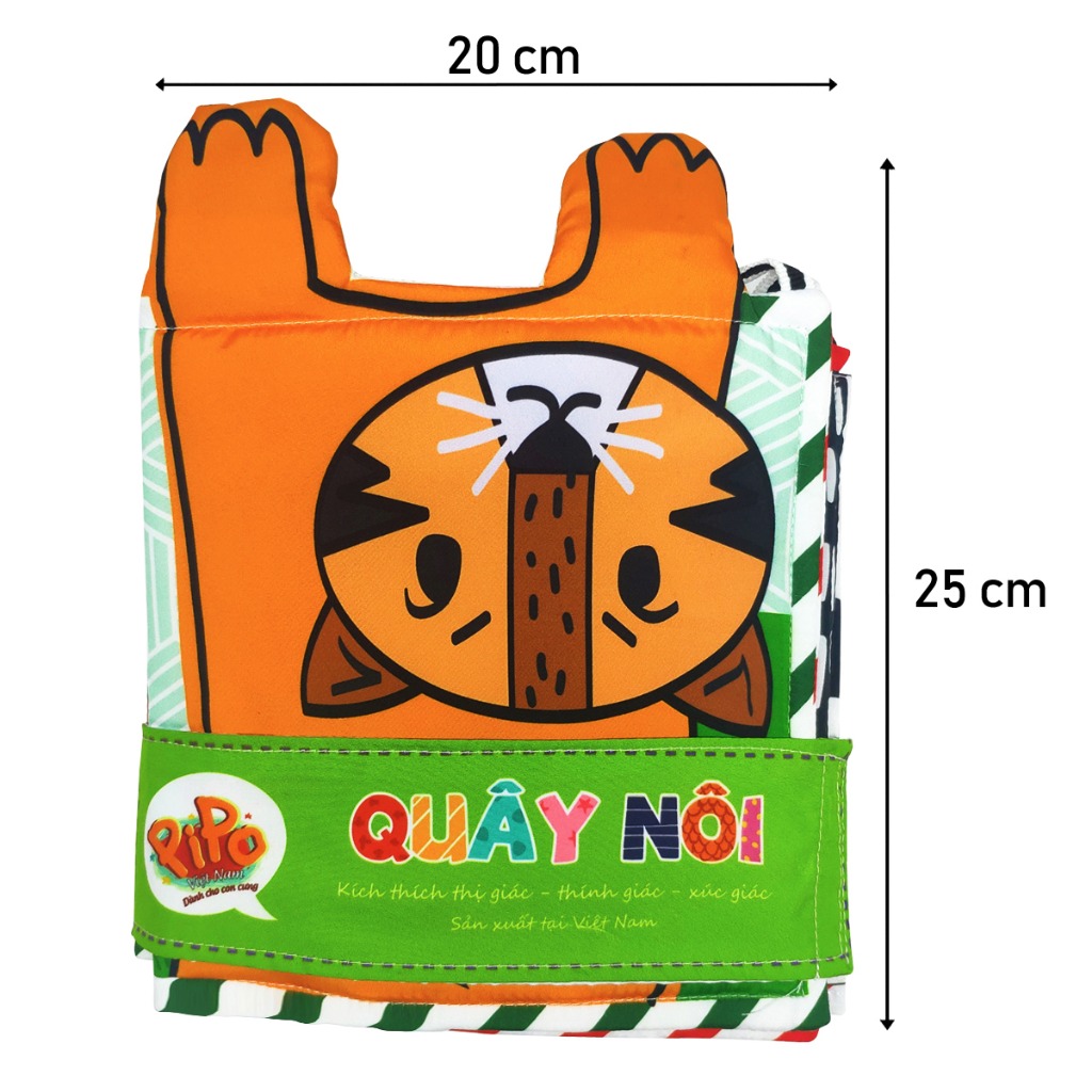 Có tác dụng như 1 đồ chơi vải tương tác với nhiều âm thanh tương tác kích thích thính giác, kích thích xúc giác, phát triển ngôn ngữ... Đồ chơi vải PiPoVietnam kiêm quây nôi cũi được thiết kế tinh tế với nhiều chi tiết nhỏ được may cẩn thận. Vật liệu sử dụng an toàn, không gây ngứa hoặc kích ứng cho làn da nhạy cảm của bé.